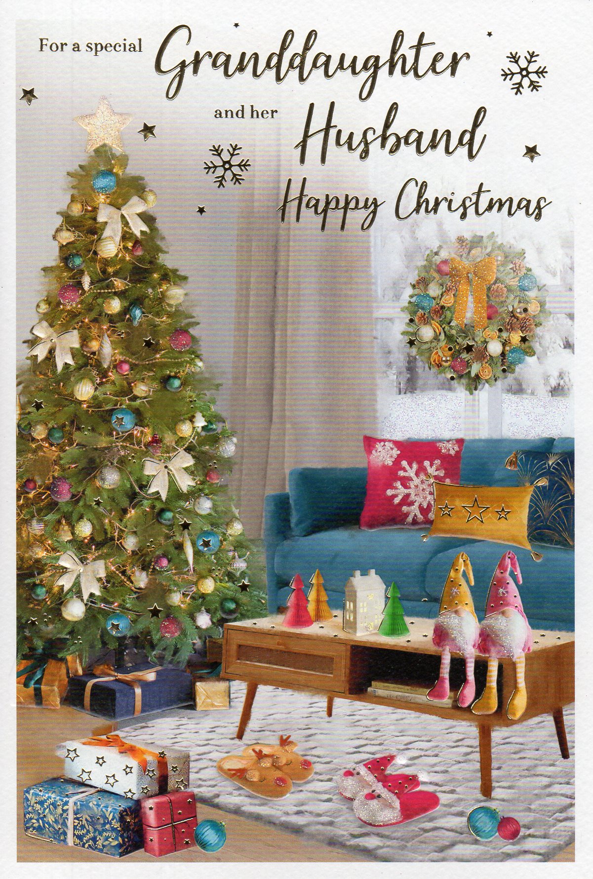 On the front the card reads: For a special Granddaughter and her Husband Happy Christmas