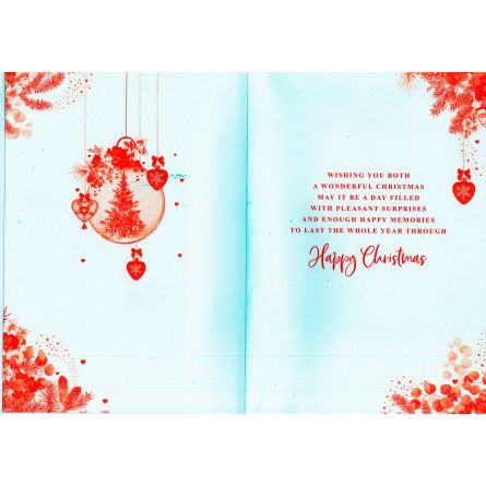Inside reads: Wishing You Both A Wonderful Christmas May It Be A Day Filled With Pleasant Surprises And Enough Happy Memories To Last The Whole Year Through Happy Christmas
