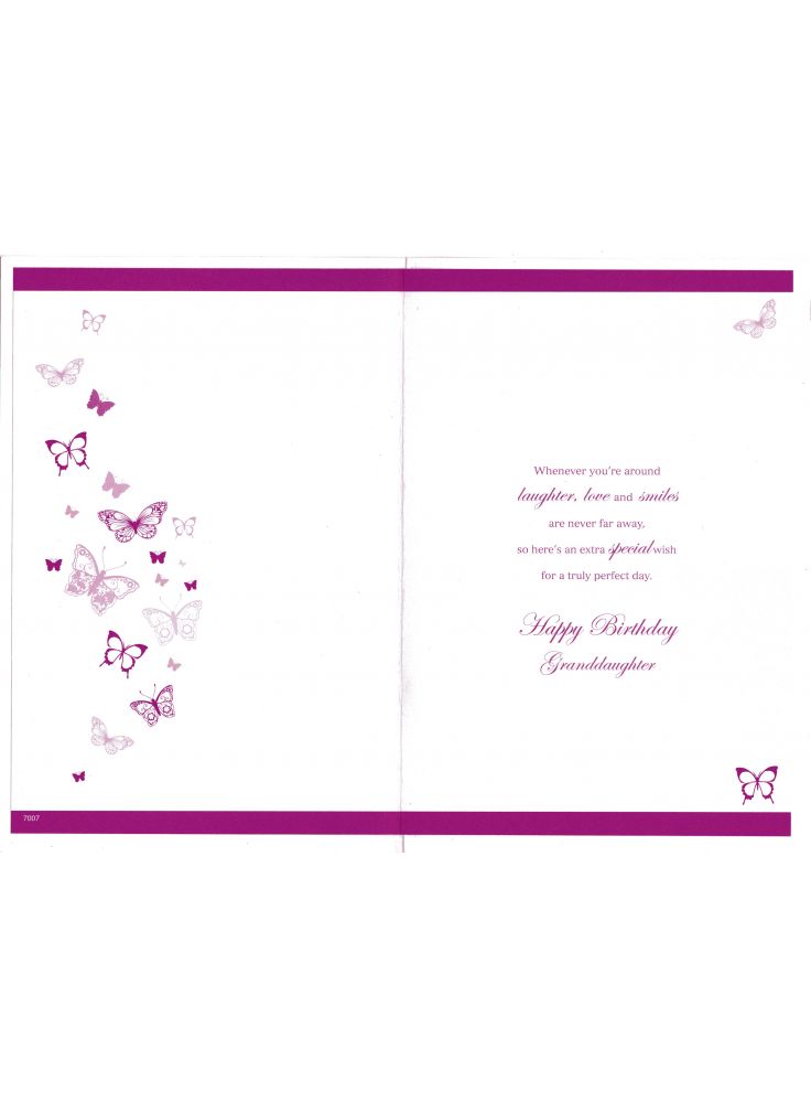 Inside reads: Whenever you're around laughter, love and smiles are never far away, so here's an extra special wish for a truly perfect day. Happy Birthday Granddaughter