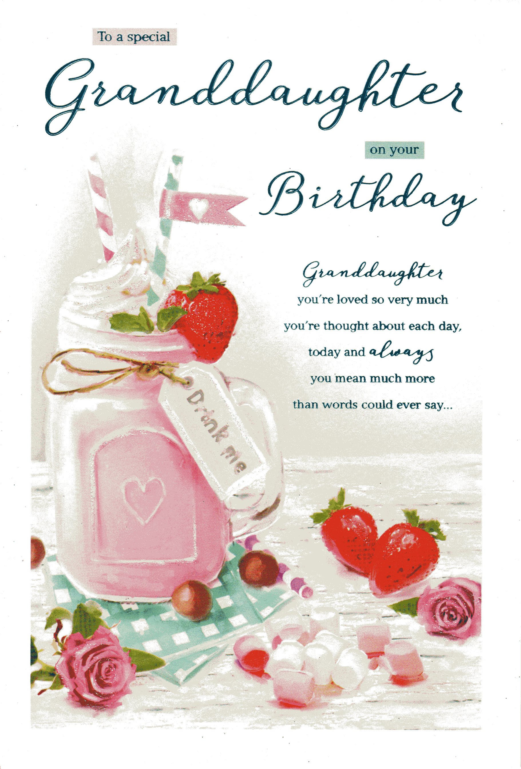 Inside Reads: ...This message comes to let you know now that your Birthday's here,to have you as a Granddaughter brings so much pride throughout the year... Hope you know on your Birthday and every single day, that within this family what a Lovely part you play. So here's a heartfelt wish for you and it's made for nothing less than a truly Perfect Birthday and a lifetime of happiness. Happy Birthday To a wonderful Granddaughter