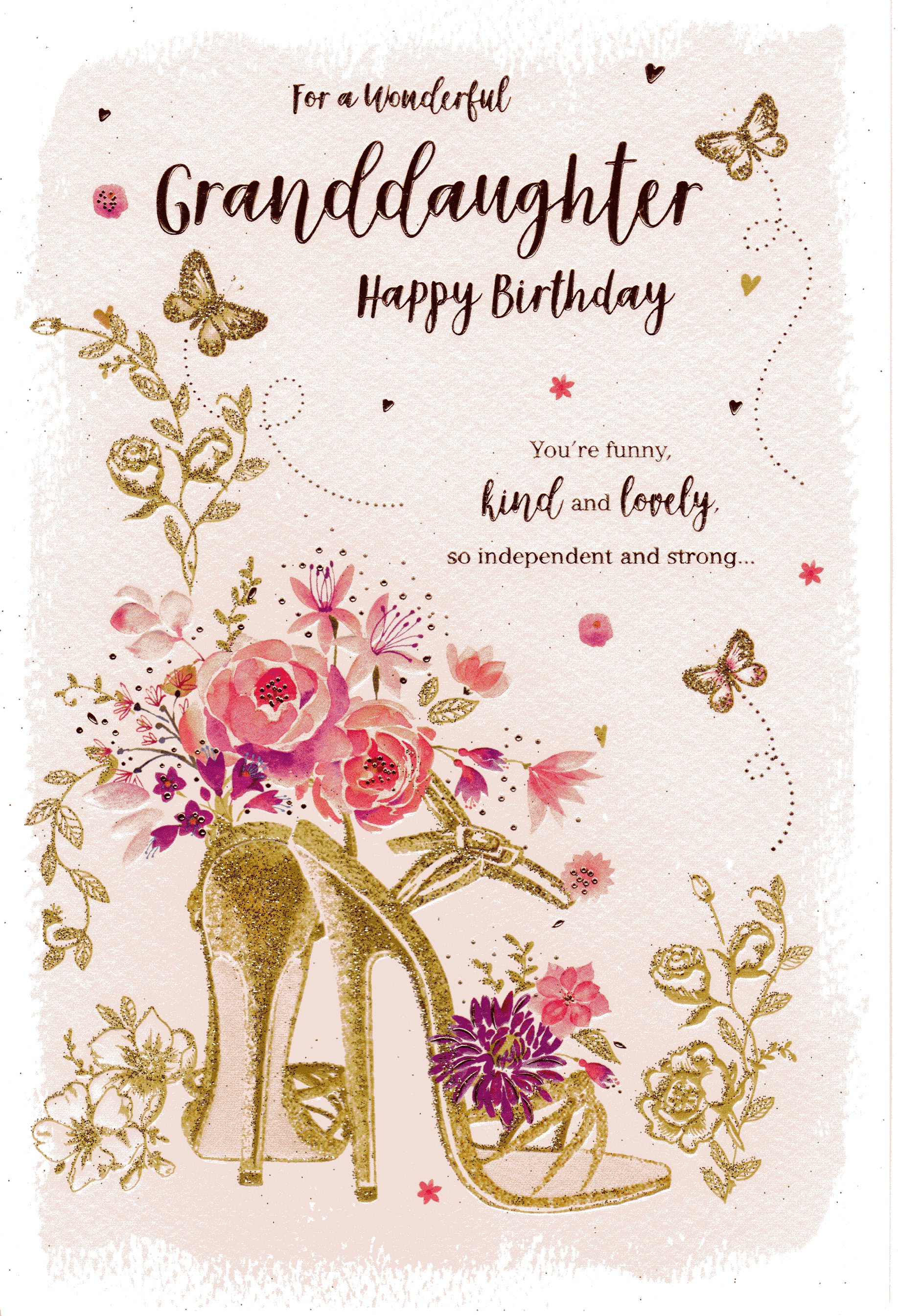 On the front the card reads: For A Wonderful Granddaughter Happy Birthday. You're funny Kind and Lovely so independent and strong...
