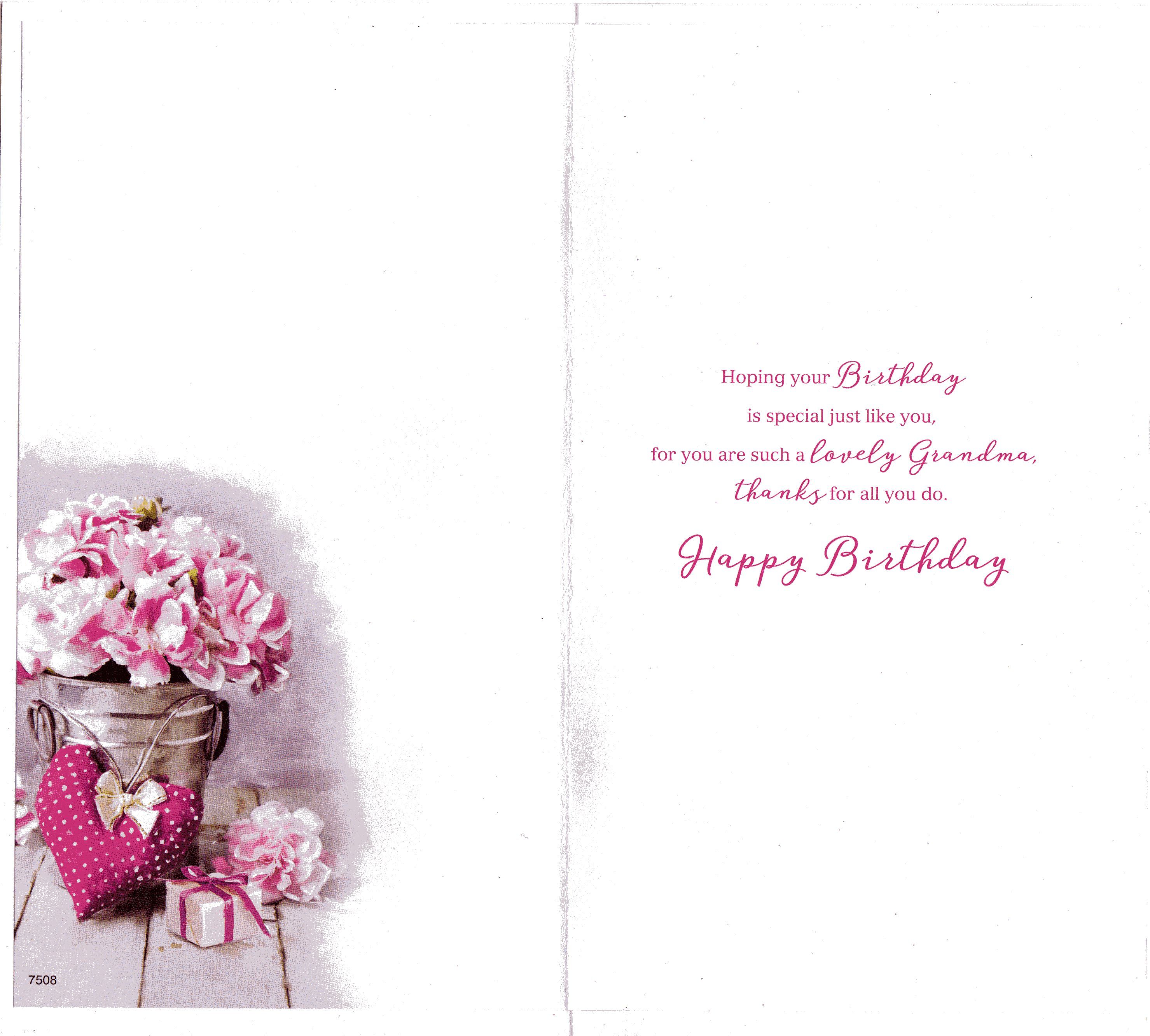 * Inside reads: Hoping your Birthday is special just like you, for you are such a lovely Grandma, thanks for all you do. Happy Birthday