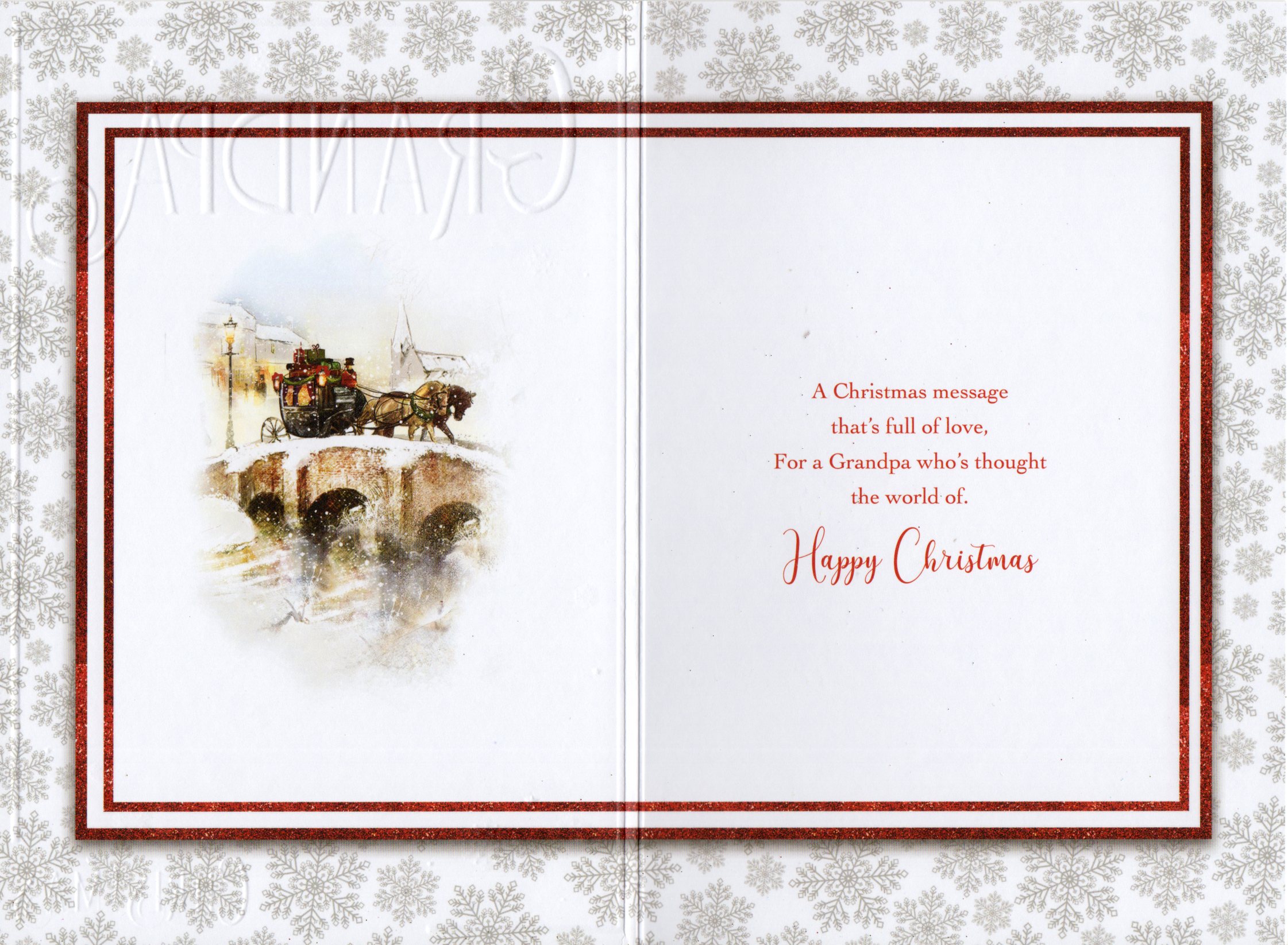 Inside reads: A Christmas message that's full of love, For a Grandpa who's thought the world of. Happy Christmas