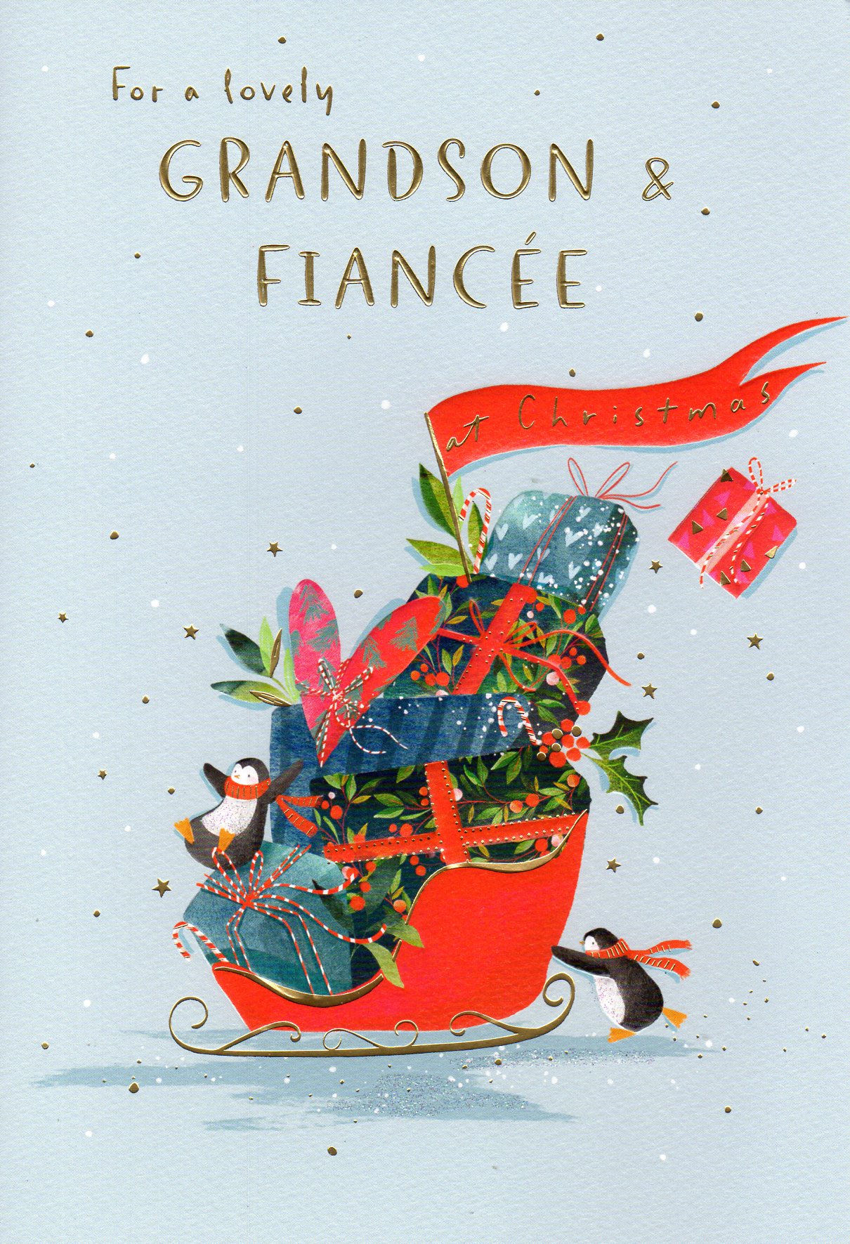 On the front the card reads: For a lively Grandson & Fiancee at Christmas