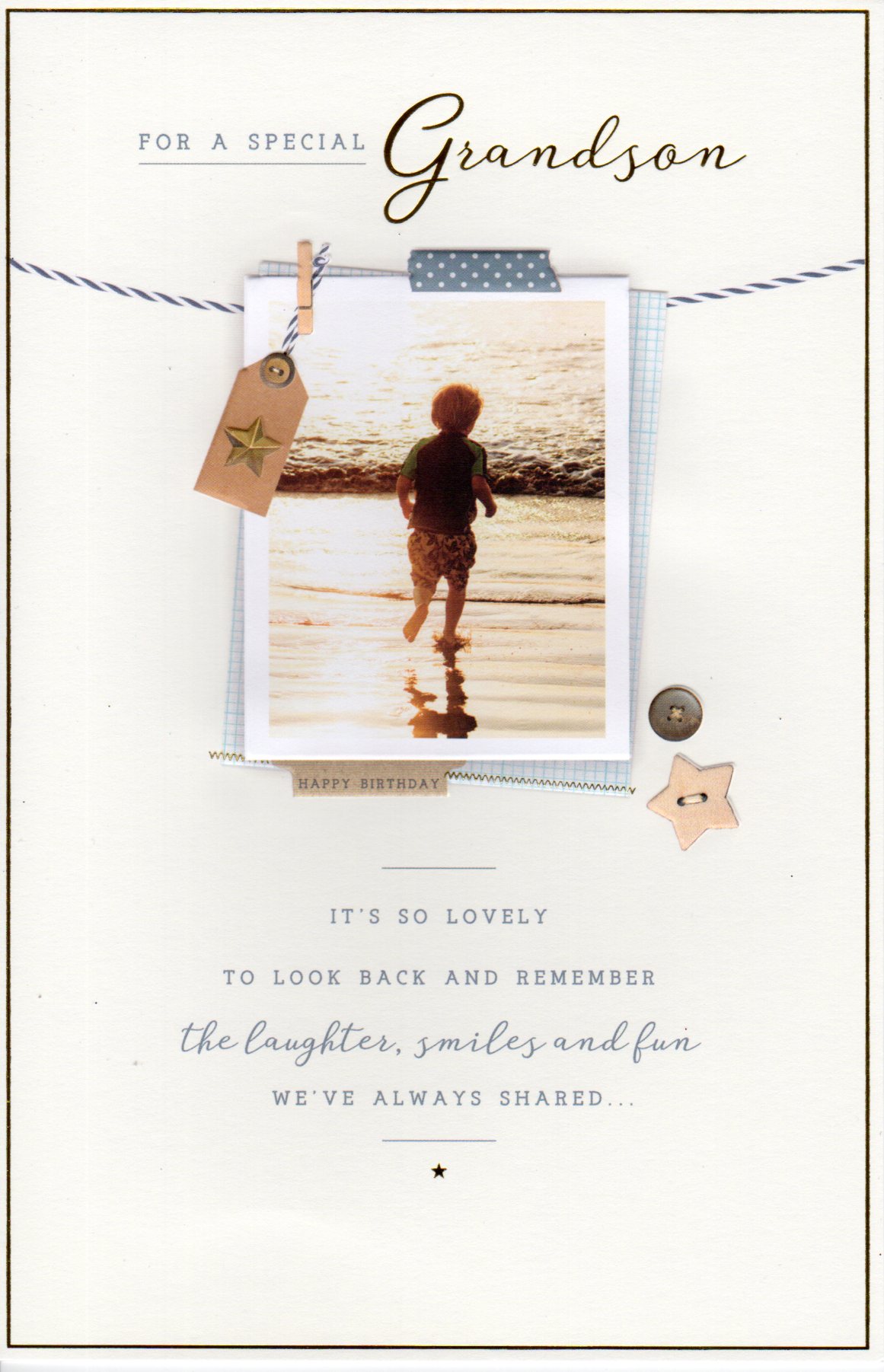 On the front the card reads: For A Special Grandson, it's so lovely to look back and remember the laughter, smiles and fun we've always shared...
