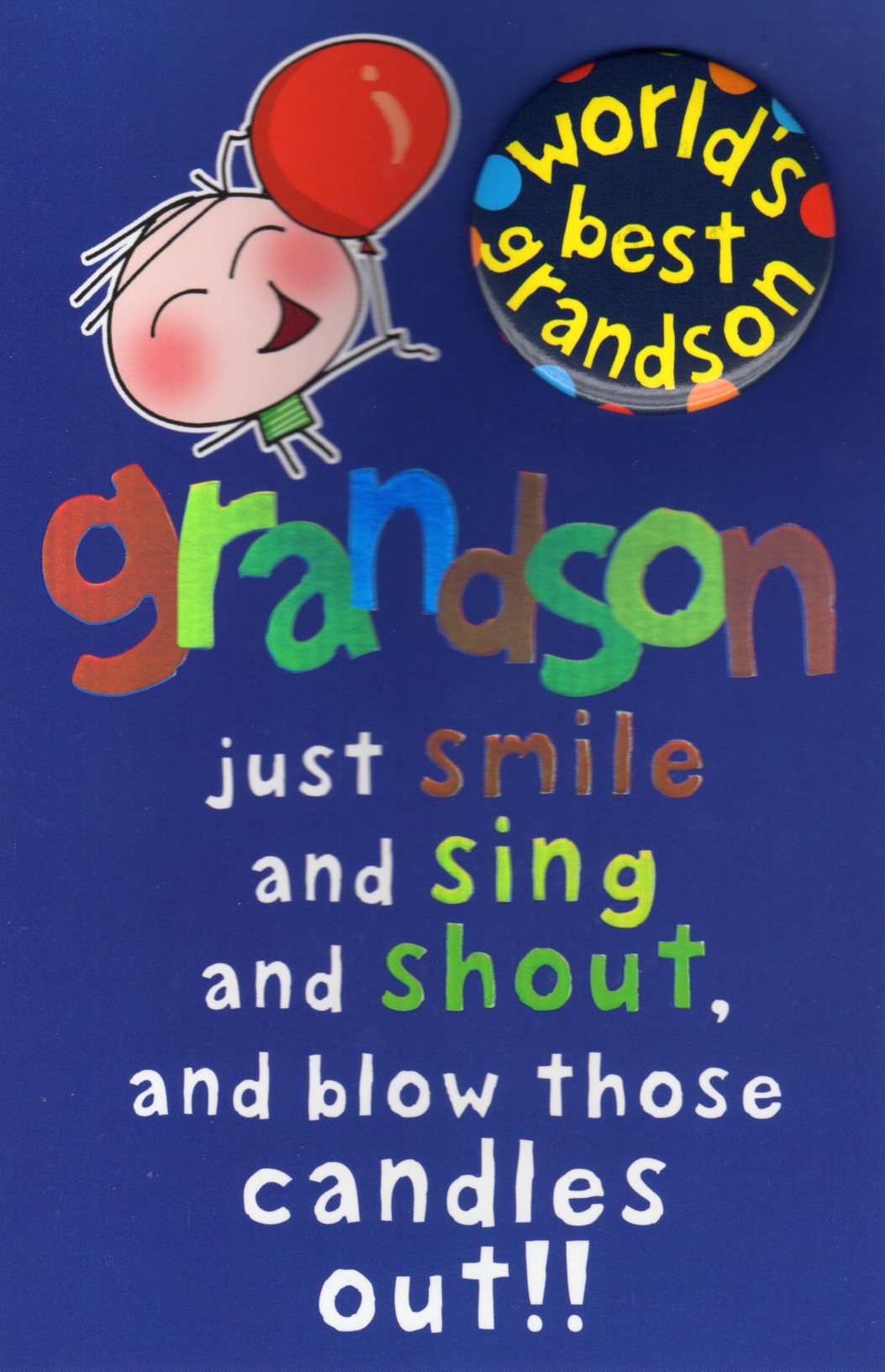On the front the card reads: Grandson just smile and sing and shout, and blow those candles out!