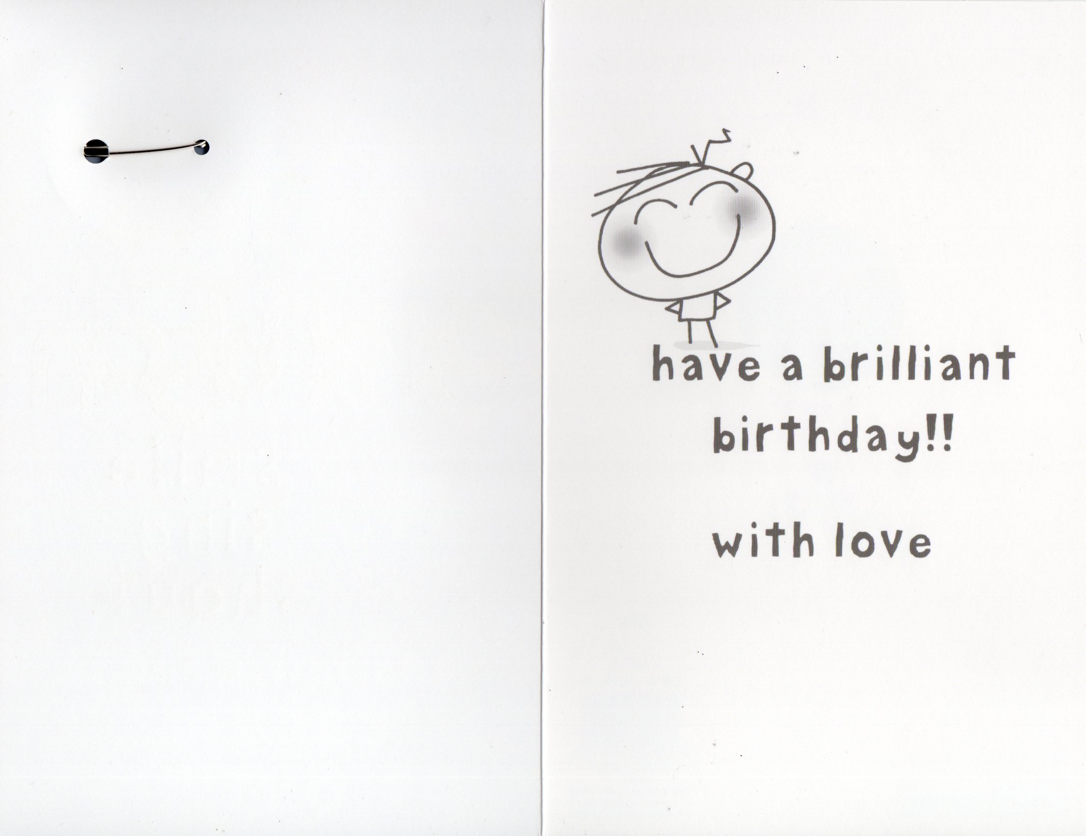 Inside reads: Have a brilliant birthday!! with love.
