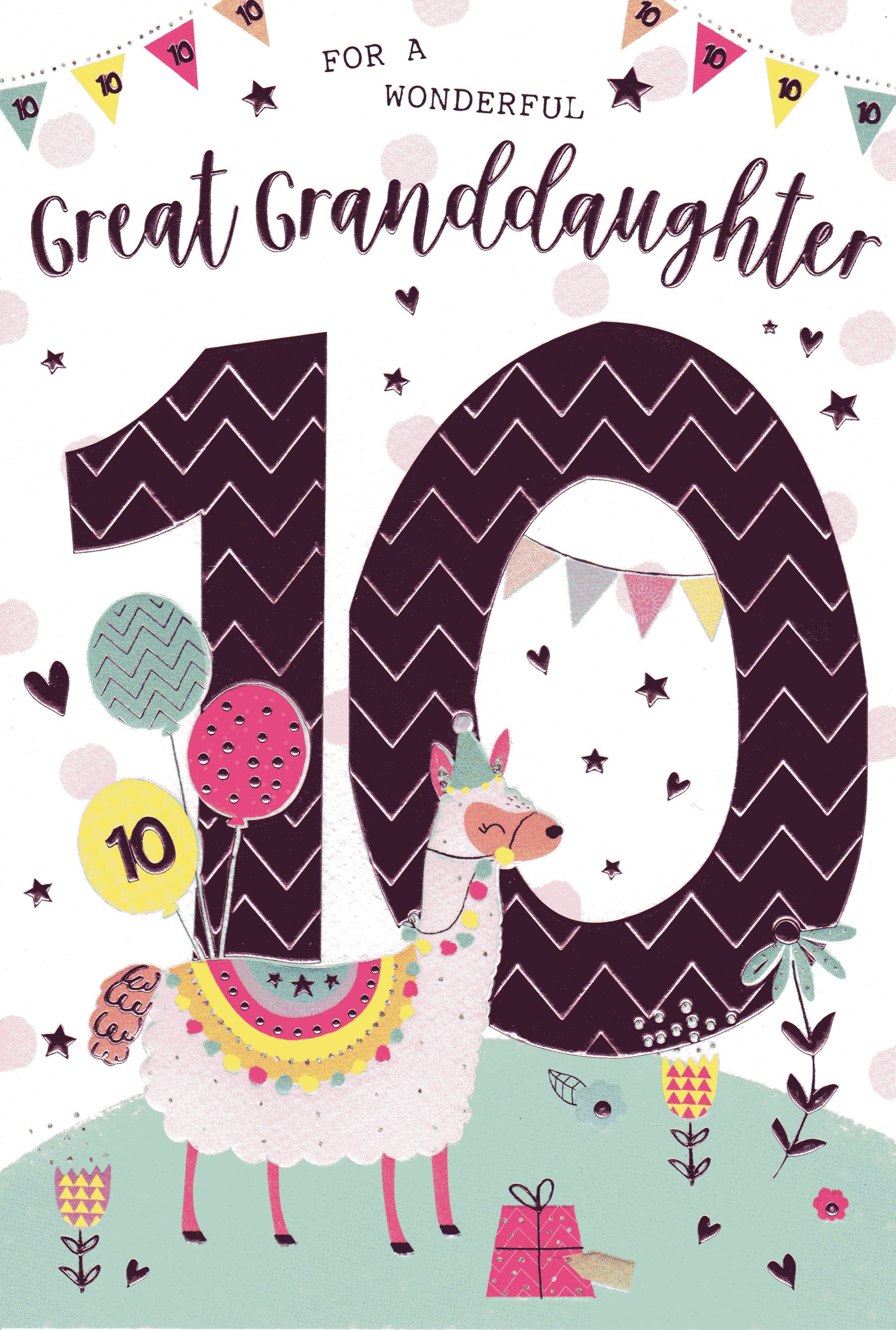On the front the card reads: For a Wonderful Great Granddaughter 10