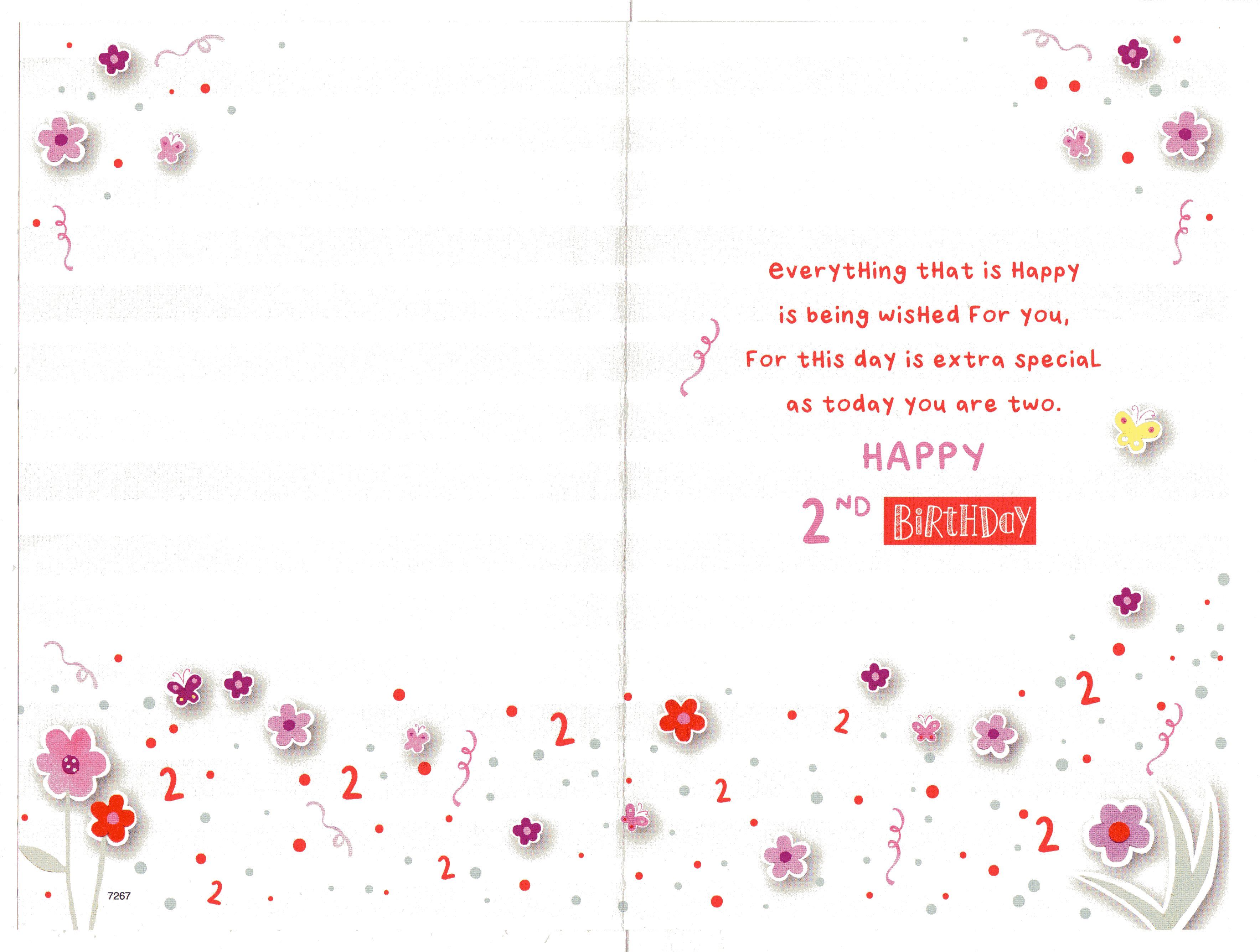 Inside reads: ...Everything that is Happy is being wished for you, For this day is extra special as today you are two. Happy 2nd Birthday