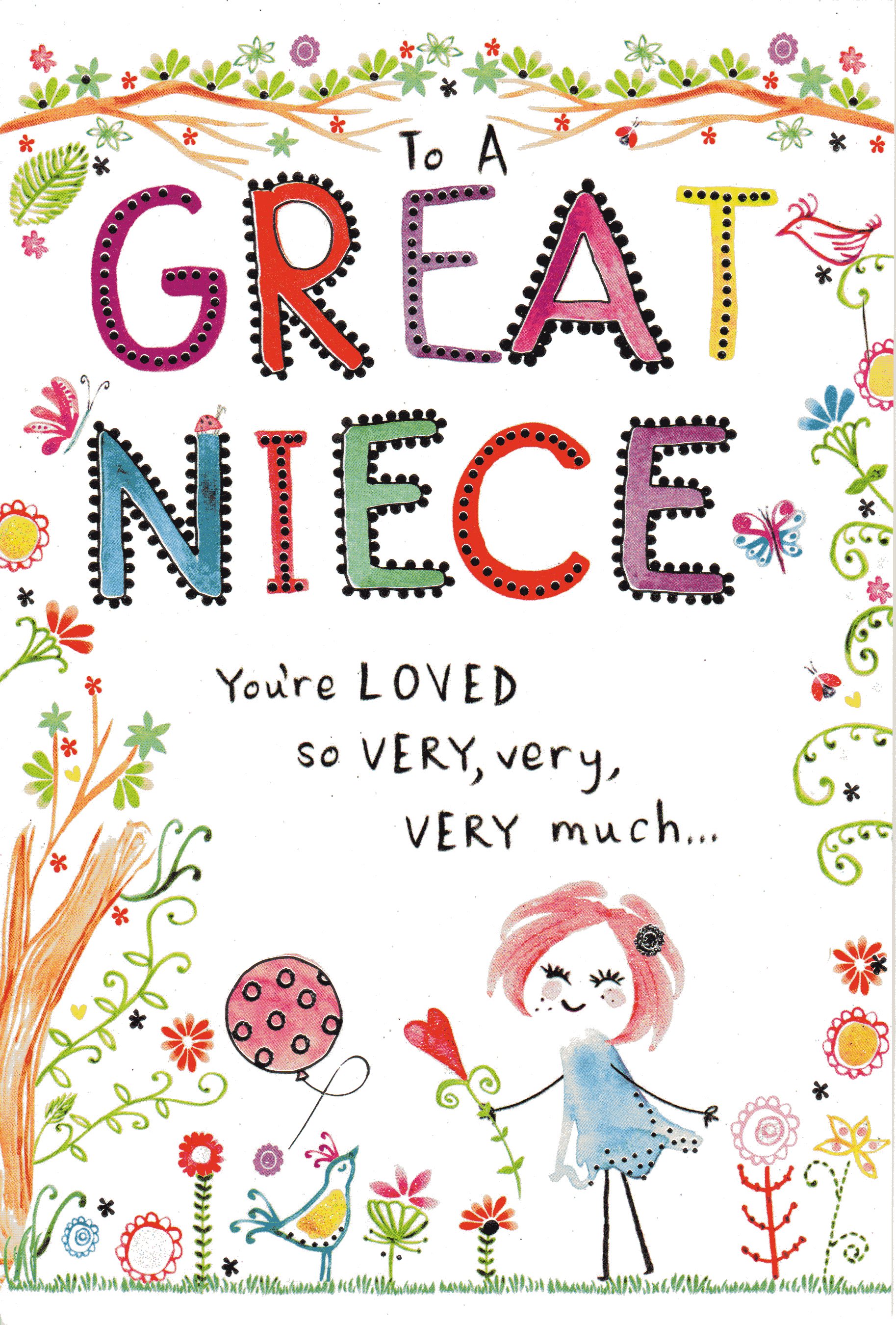 * On the front the card reads: To a Great Niece You're Loved so Very, Very, Very much....