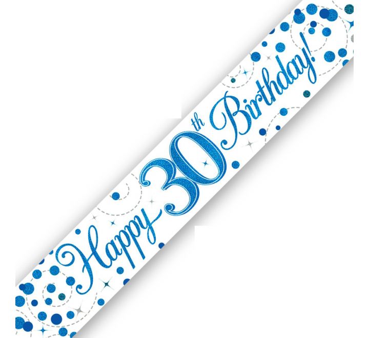 Happy 30th Sparkling Fizz Birthday Blue Holographic Banner