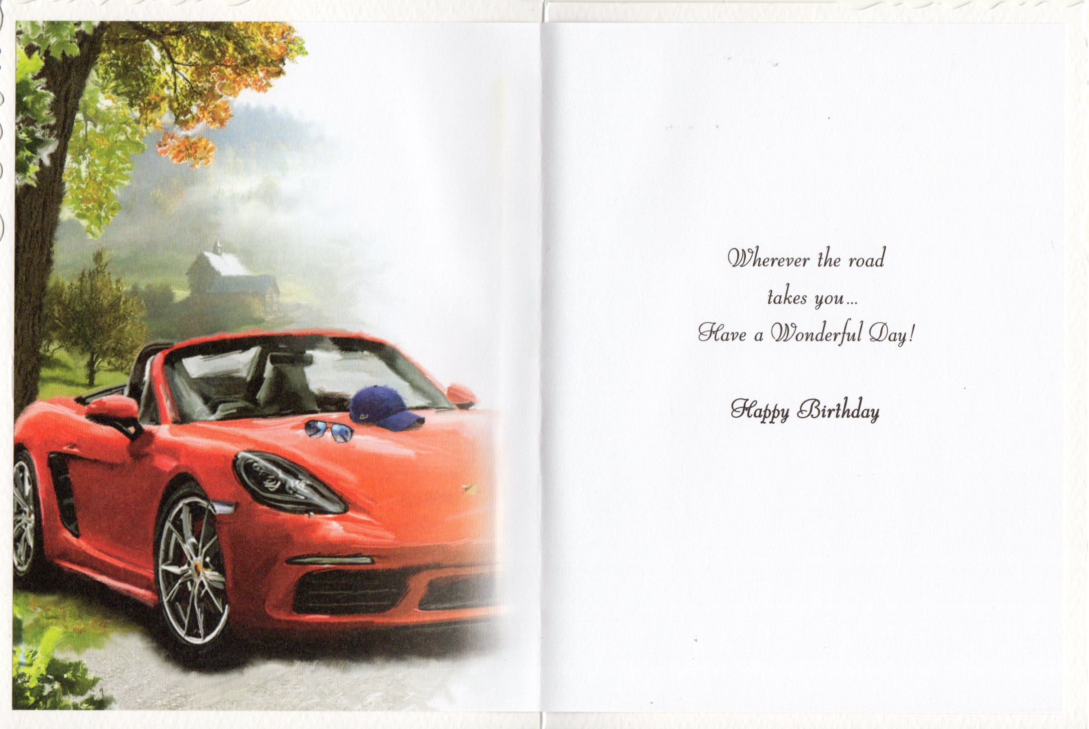 Inside reads: Wherever the road take you... Have a wonderful Day! Happy Birthday