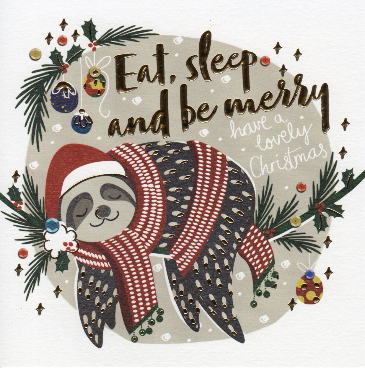 On the front the card reads: Eat, Sleep and be merry have a lovely Christmas