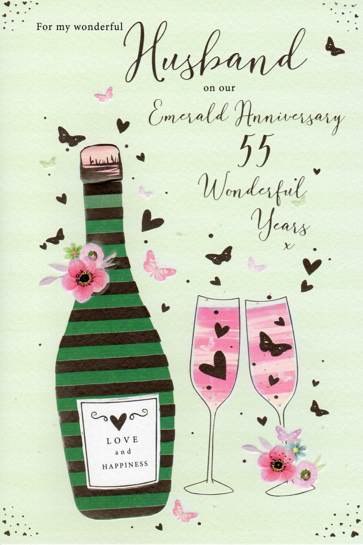 On the front the card reads: For my wonderful Husband on your Emerald Anniversary 55 Wonderful Years