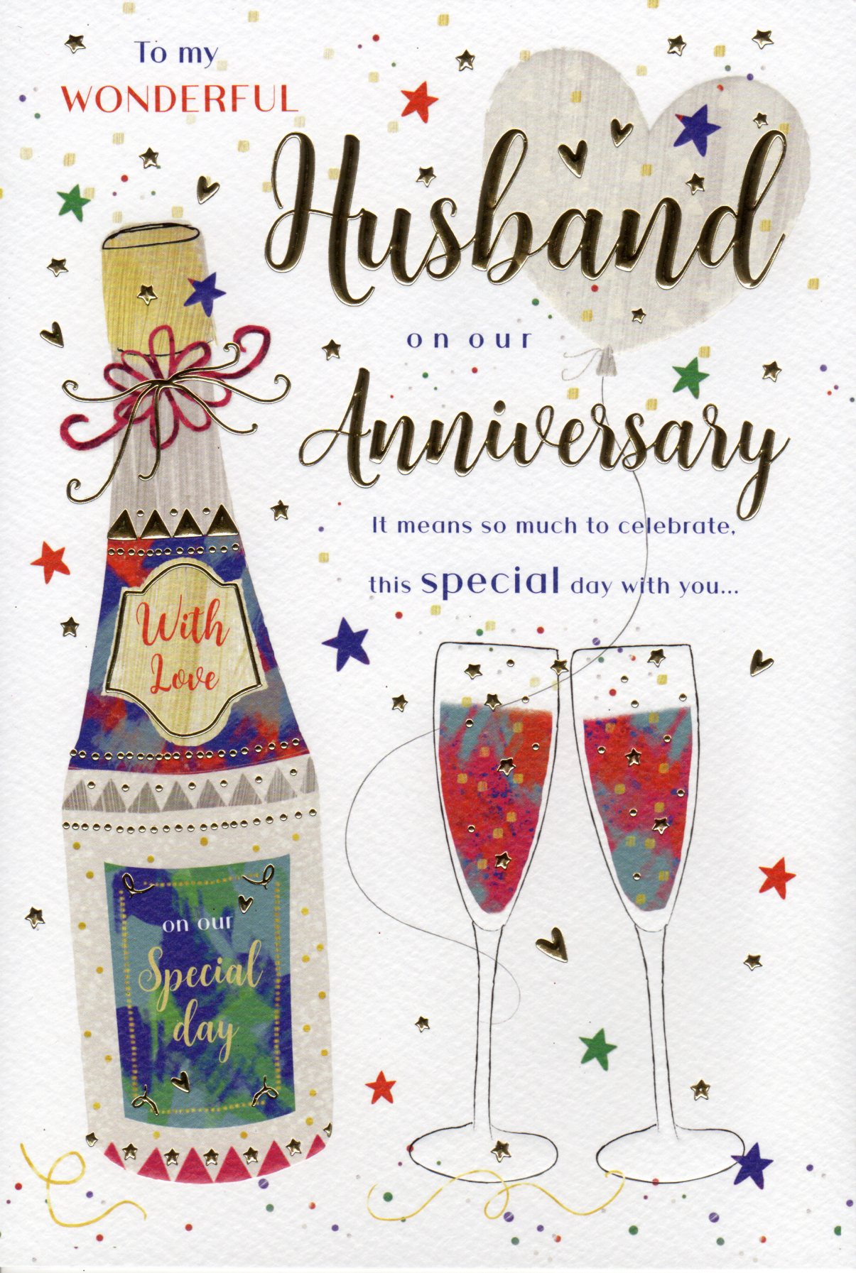 On the front the card reads: To my wonderful Husband on our Anniversary it means so much to celebrate, this special day with you...
