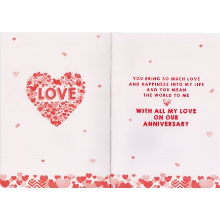 Inside reads: You Bring So Much Love And Happiness Into My Life And You Mean The World To Me With All My Love On Our Anniversary