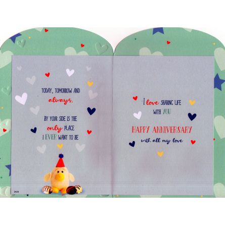 Inside reads: Today, Tomorrow And always, By Your Side Is The only Place I Ever Want To Be. I Love Sharing Life With You Happy Anniversary with all my love