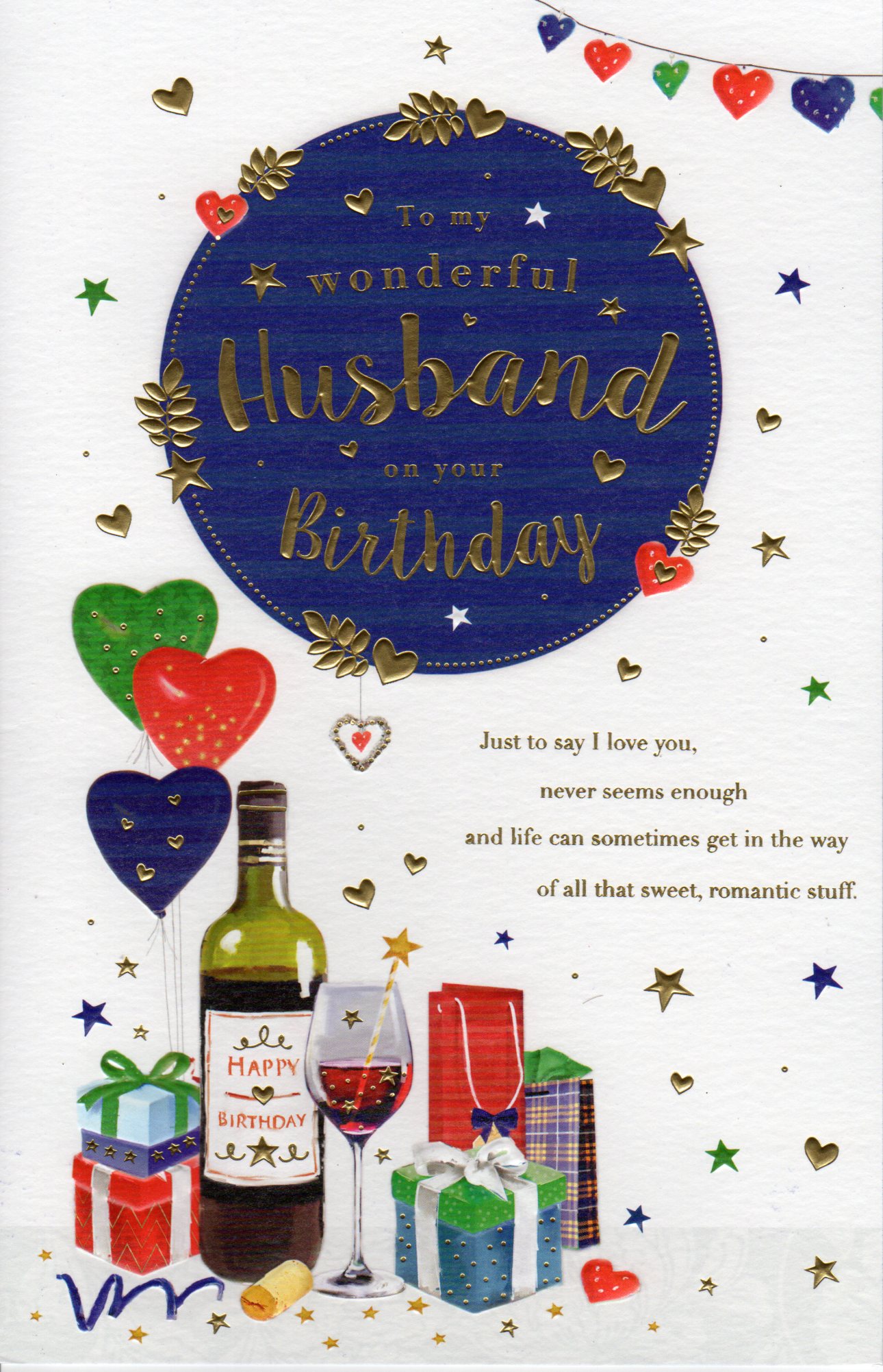 On the front the card reads: To My Wonderful Husband On Your Birthday, just to say I love you, never seems enough and life can sometimes get in the way of all that sweet, romantic stuff.
