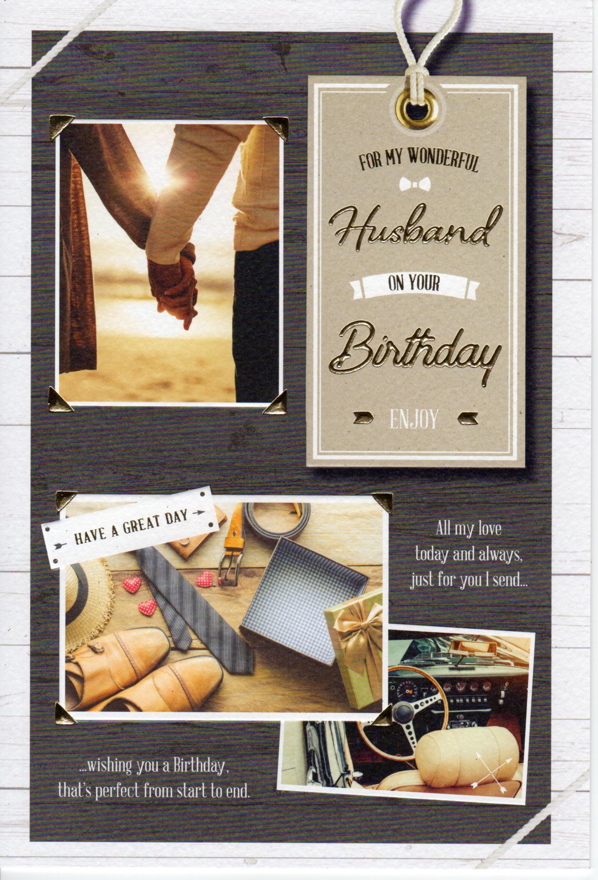 On the front the card reads: For my wonderful Husband on your Birthday enjoy, Have a Great day, All my love today and always, just for you I send..., ...wishing you a Birthday, that's perfect from start to end.