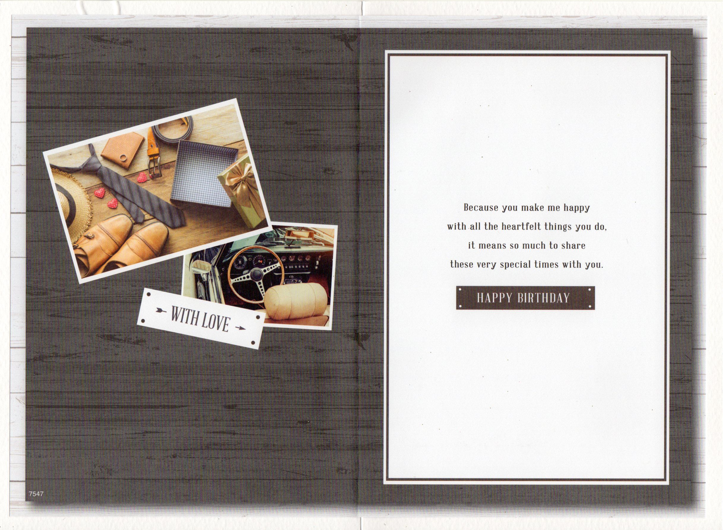 Inside reads: Because you make me happy with all the heartfelt things you do, it means so much to share these very special time with you. happy Birthday