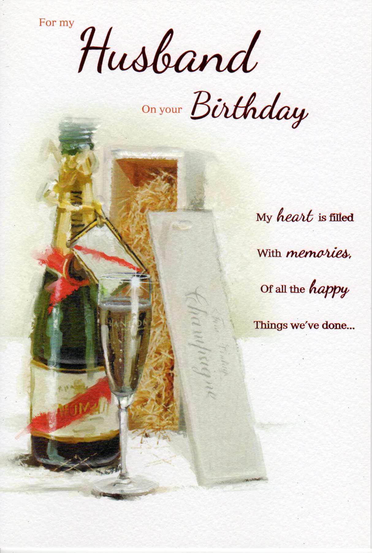 On the front the card reads: For my Husband on your Birthday my heart is filled with memories, of all the happy Things we've done...