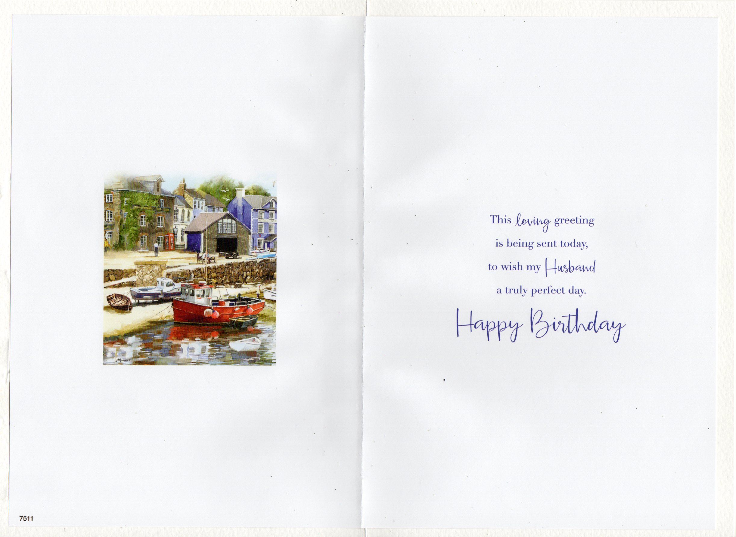 Inside reads: This loving greeting is being sent today, to wish my Husband a truly perfect day. Happy Birthday