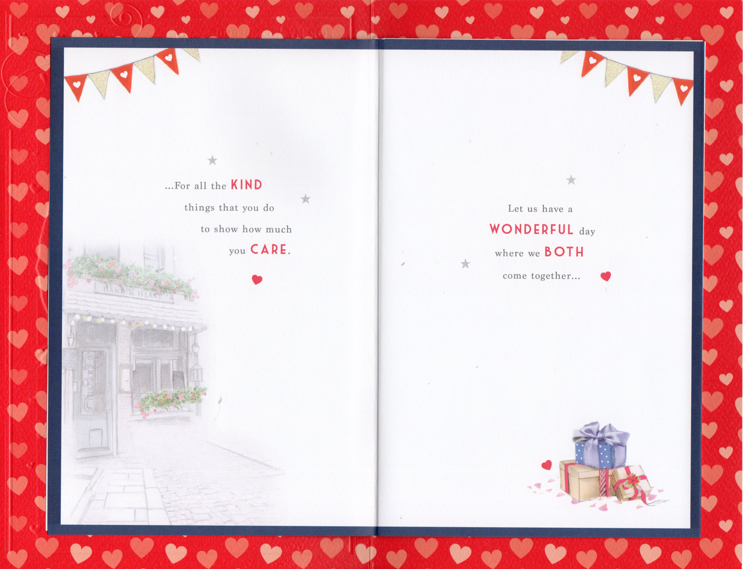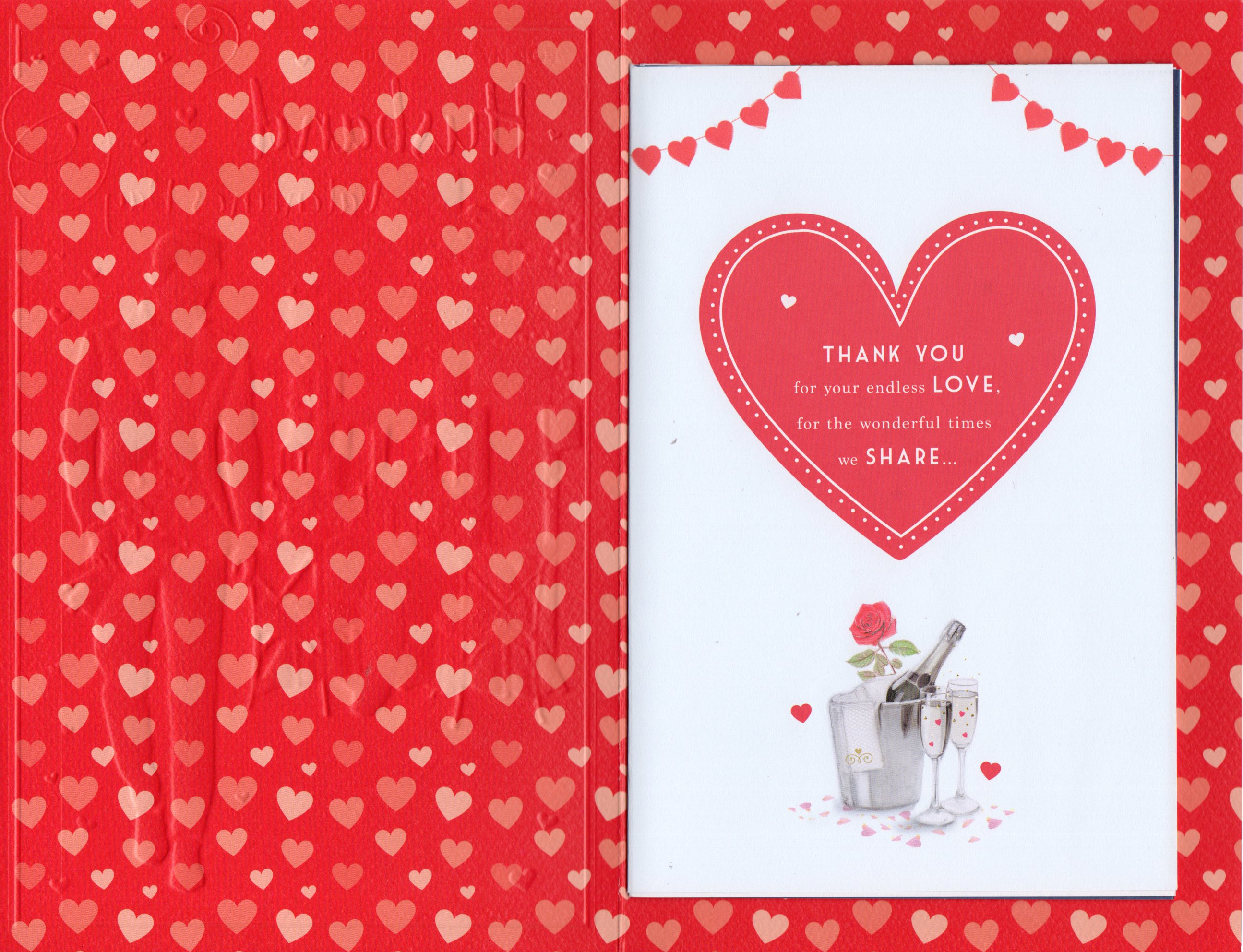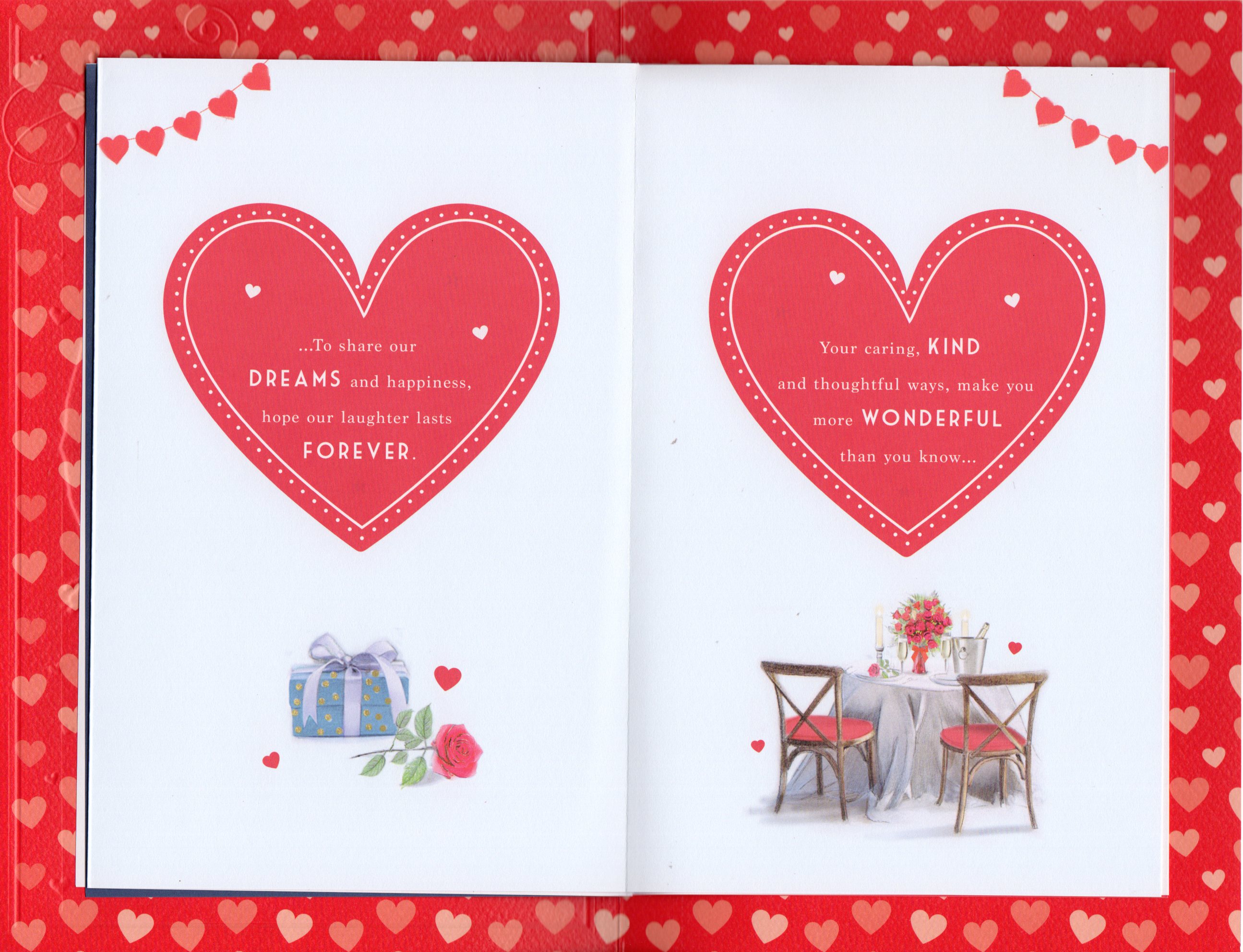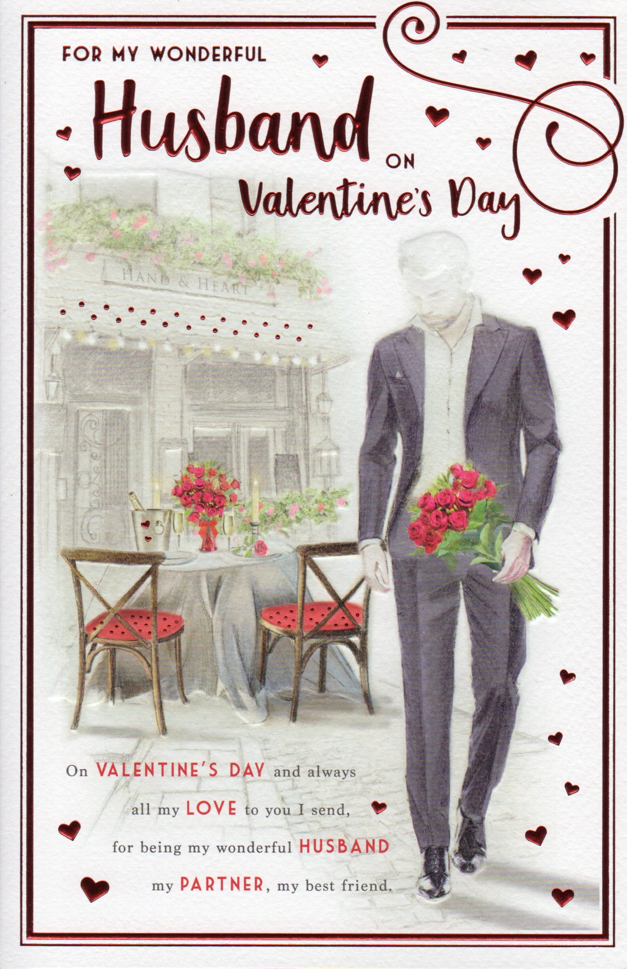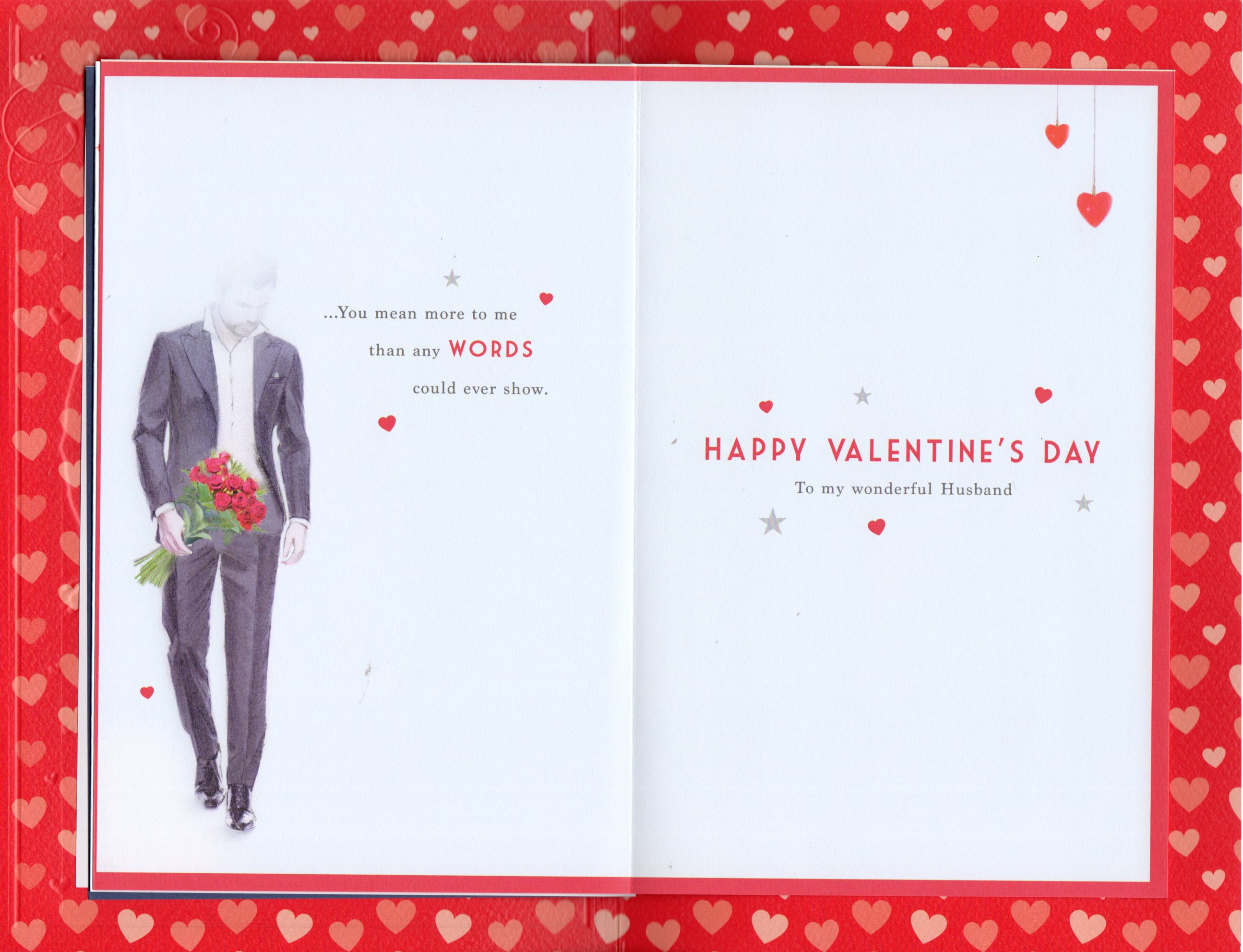 On the front the card reads: For My Wonderful Husband On Valentine's Day, On Valentine's Day and always all my Love to you I send, for being my wonderful Husband my Partner, my best friend.