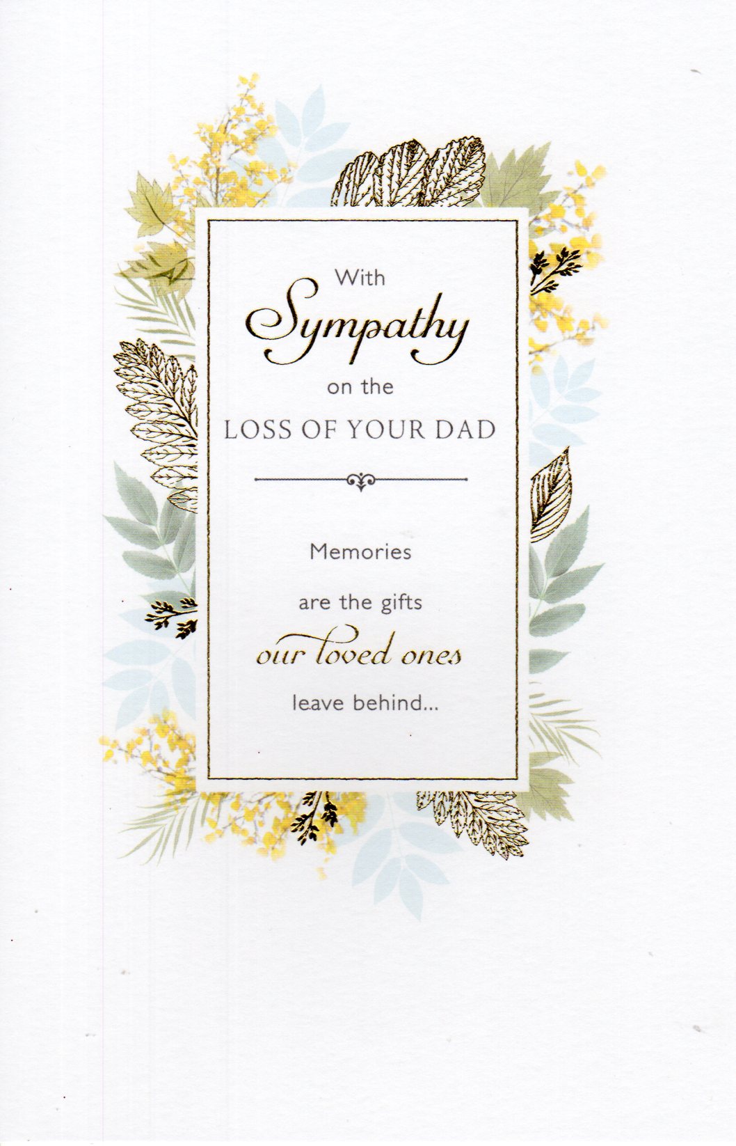 On the front the card reads: With Sympathy on the Loss Of Your Dad Memories are the gifts our loved ones leave behind...