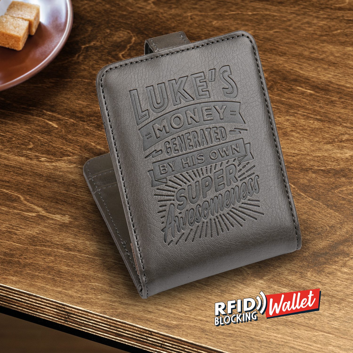 Walled has poked for bank and credit cards and a sturdy fastener