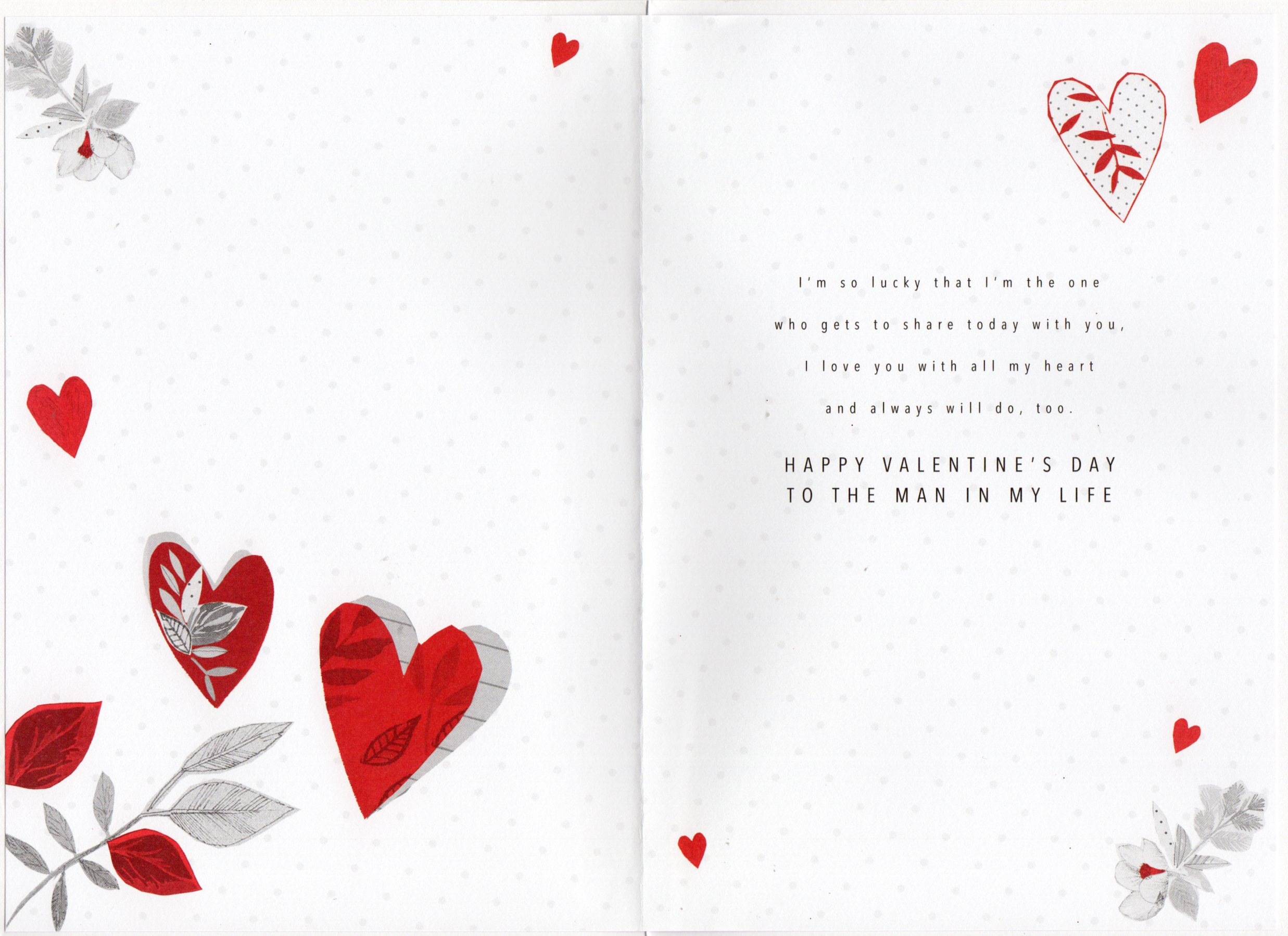 Inside reads: I'm so lucky that I'm the one who gets to share today with you, I love you with all my heart and always will do, too. Happy Valentine's Day To The Mam My Life