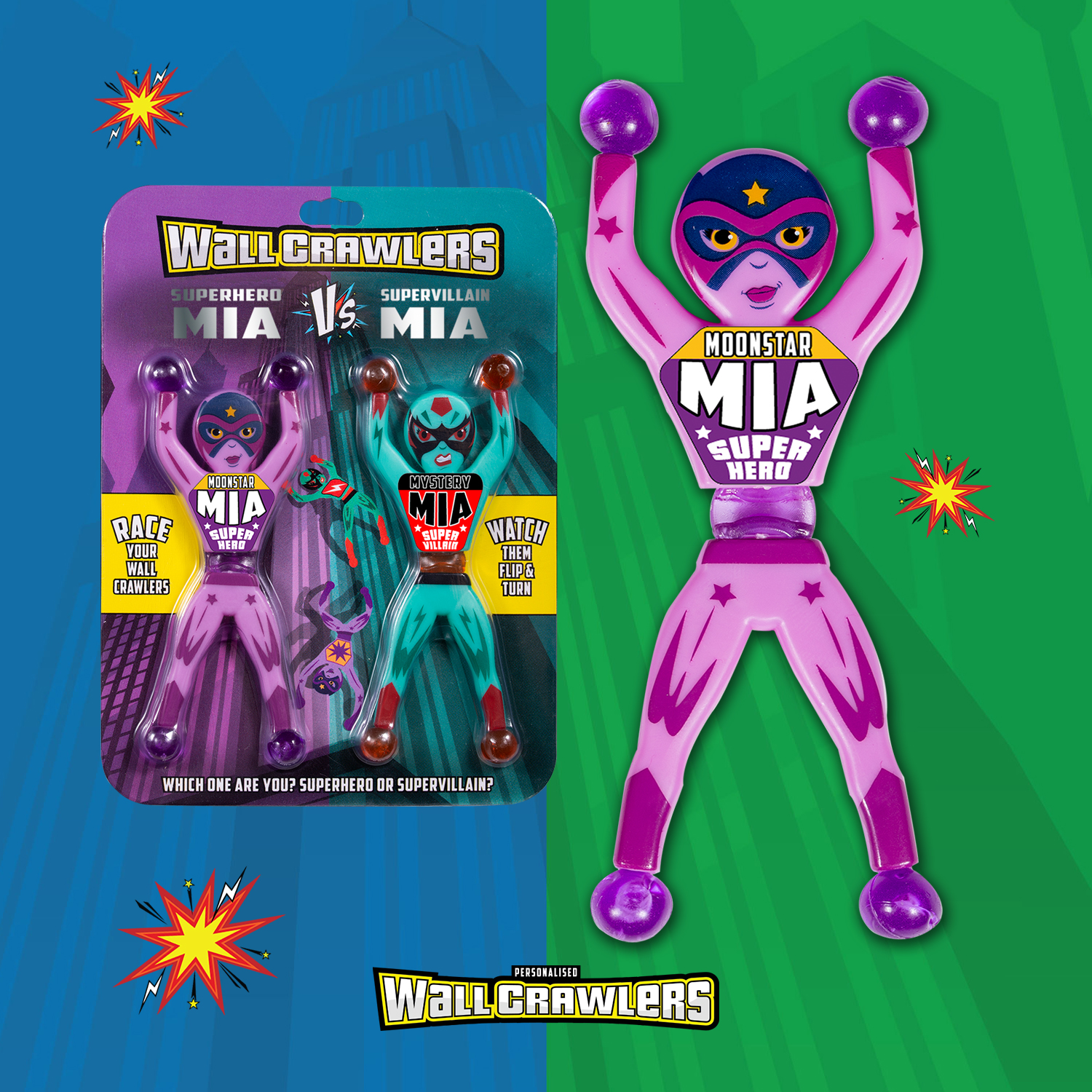 Throw your superhero and supervillain Wall Crawlers at a smooth vertical surface- try a wall, window or even bathroom tiles and see a super race in action!