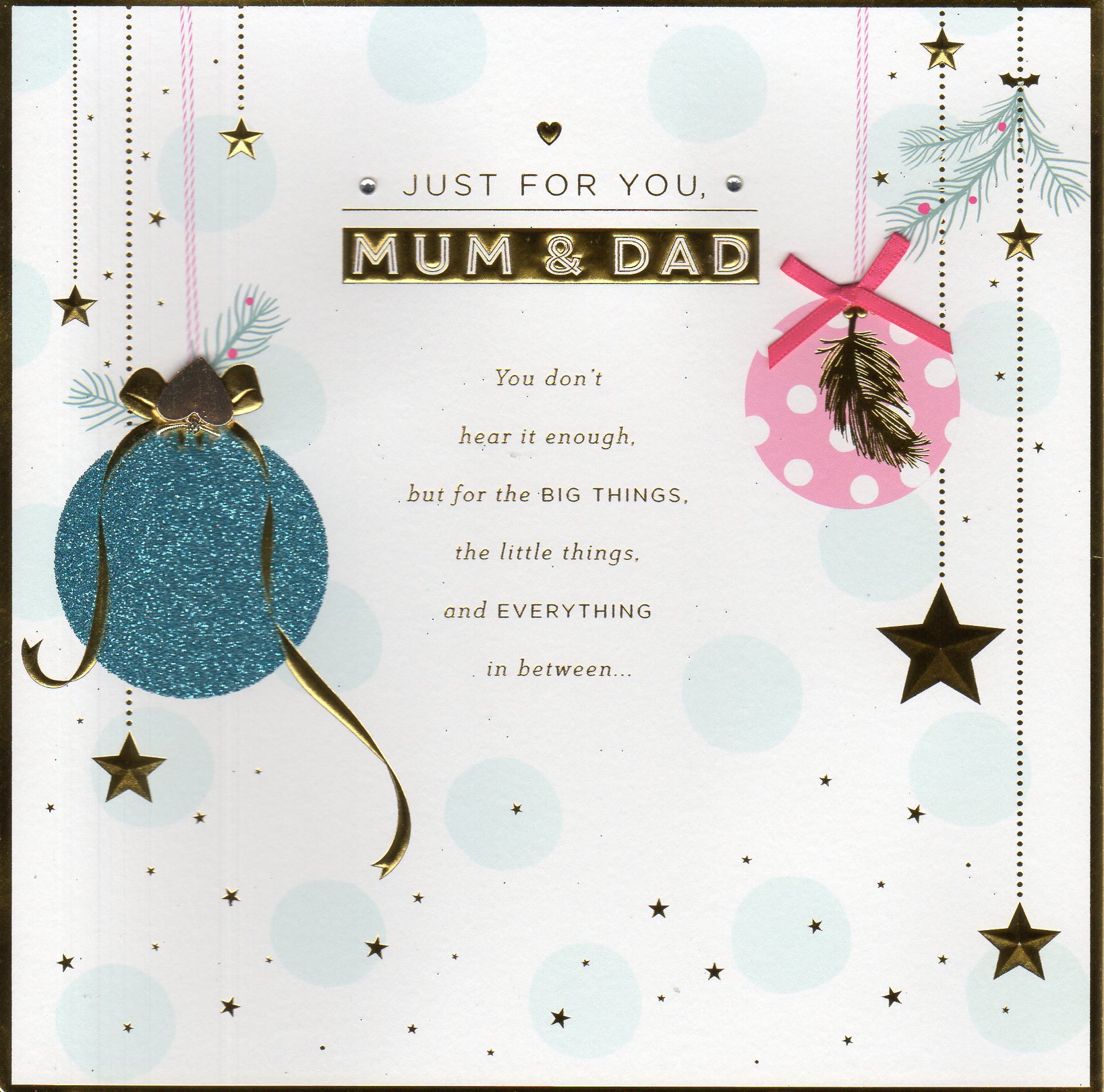 In the front the card reads: Just For You Mum & Dad you don't hear it enough but for the Big Things. the little things, and Everything in between...