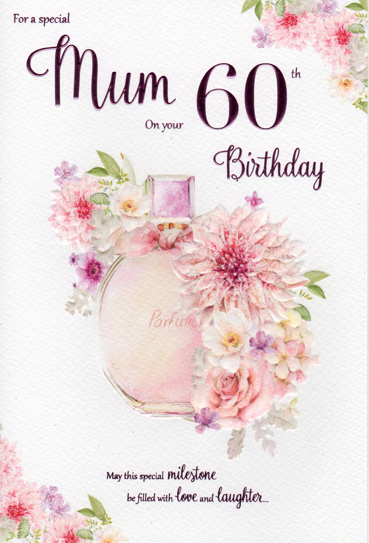 On the front the card reads: For a special mum on your 60th birthday May this special milestone be filled love and laughter...