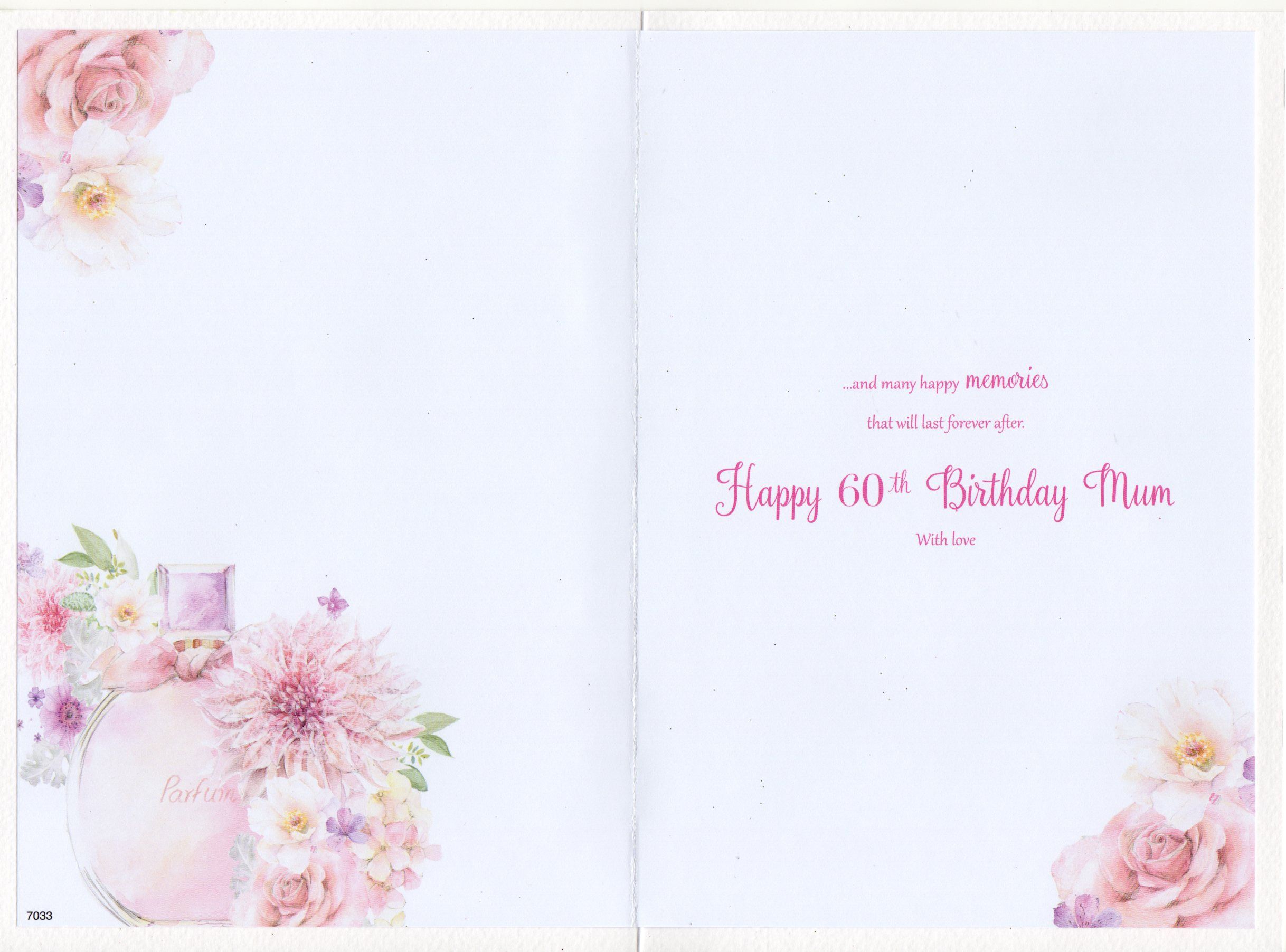 Inside reads: ...and many happy memories that will last forever after. Happy 60th Birthday Mum with love.