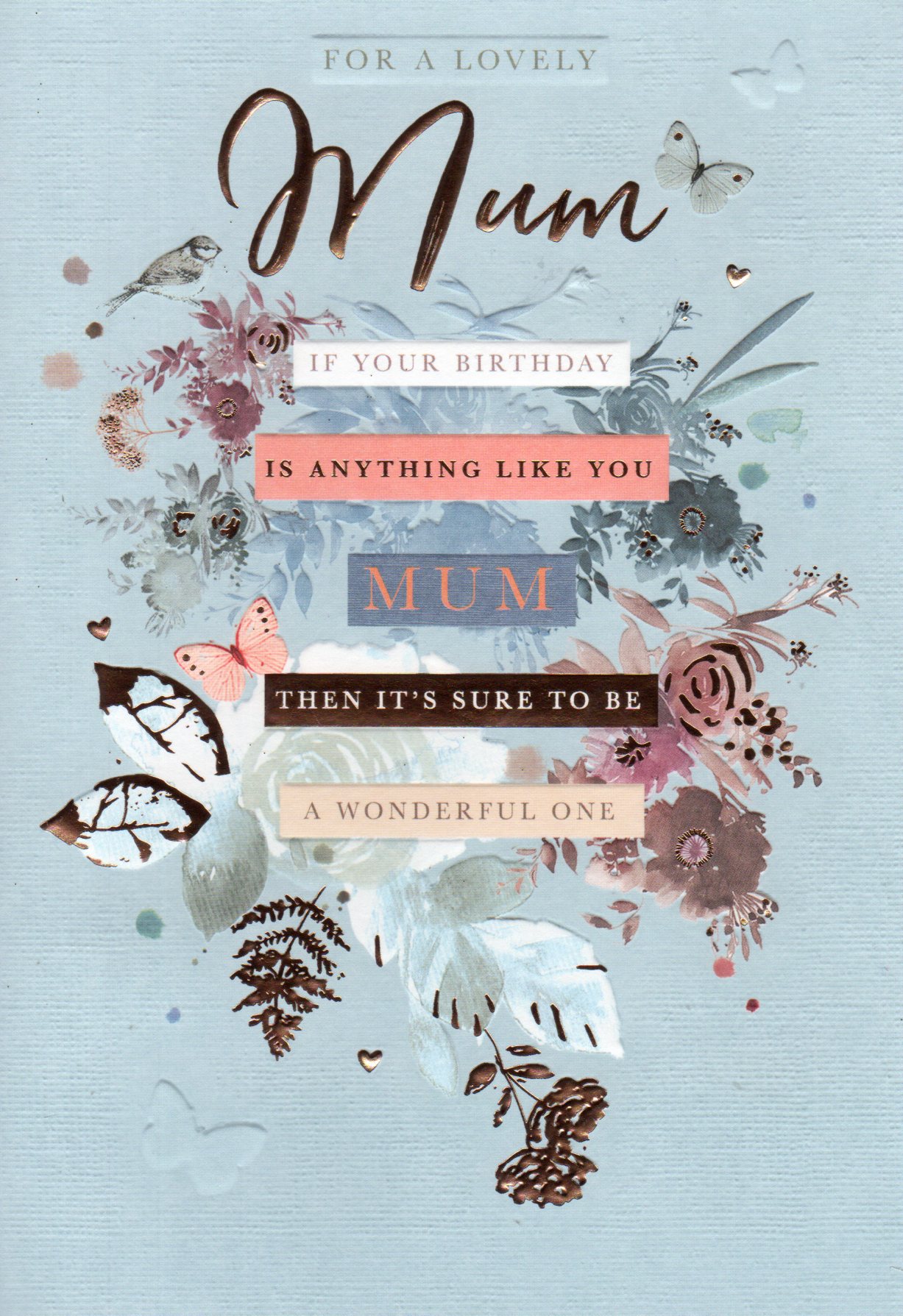 On the front the card reads: For A Lovely Mum If Your Birthday Is Anything Like You Mum Then It's Sure To Be A Wonderful One