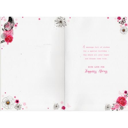 Inside reads: A message full of wishes for a special birthday - one where all your hopes and dreams come true. With Love For Happiness Always