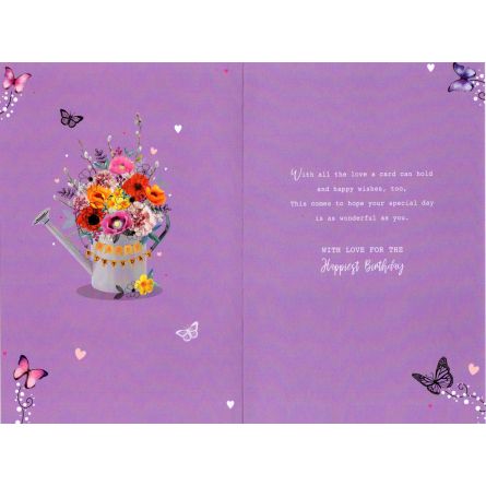 Inside reads: With all the love a card can hold and happy wishes, too, This come to hope your special day is as wonderful as you. With Love For The Happy Birthday