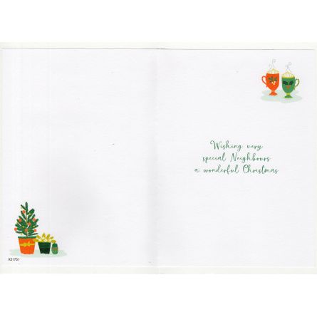 In the front the card reads: To Wonderful Neighbors At Christmas