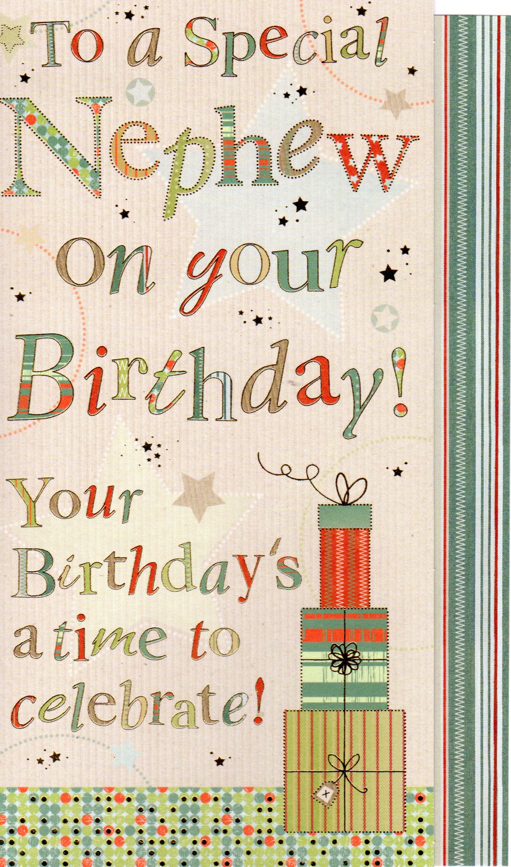On the front the card reads: To a Special Nephew On Your Birthday! Your Birthday's a time to celebrate!