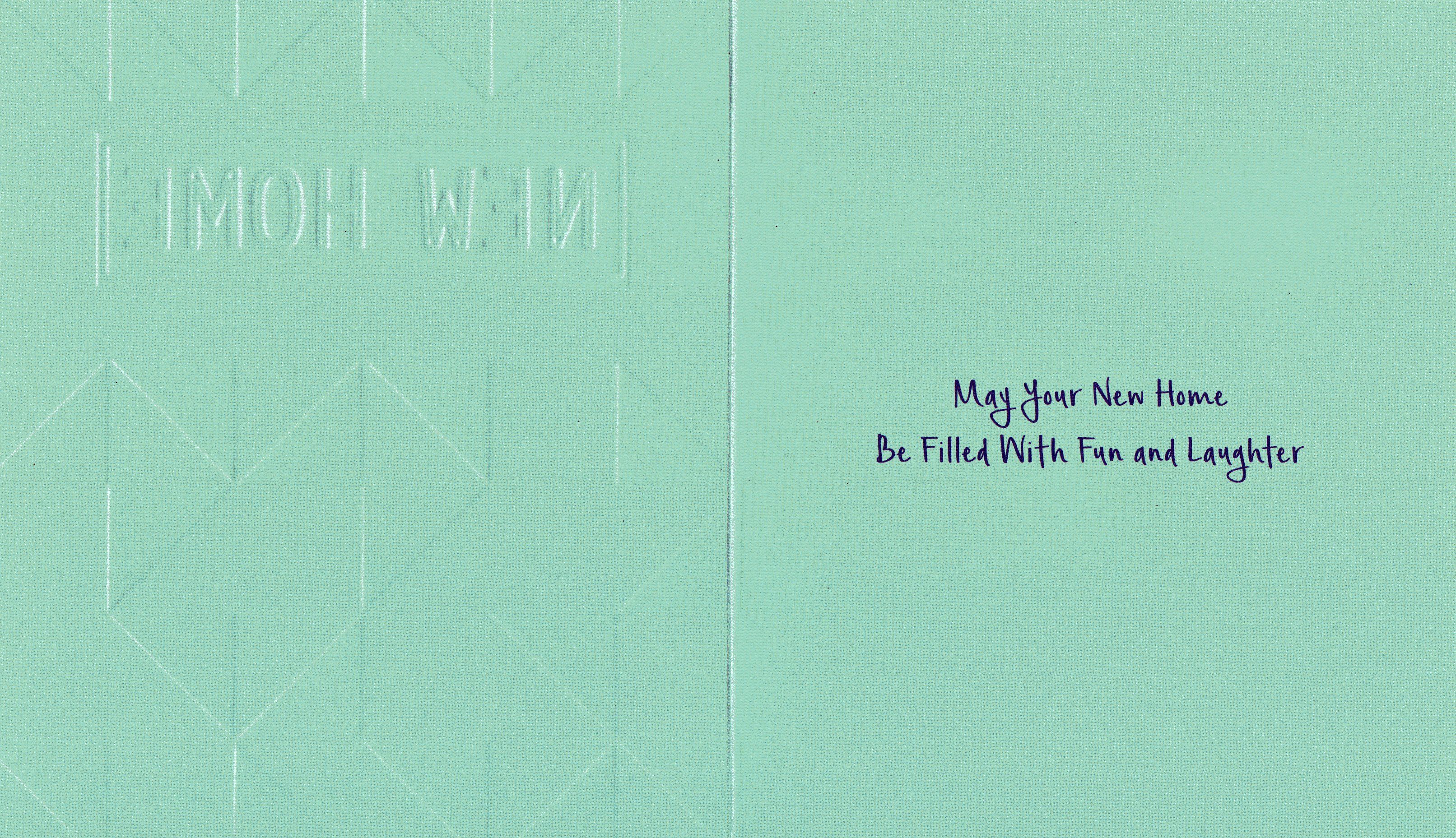 Inside reads: May your New Home Be Filled With Fun and Laughter.