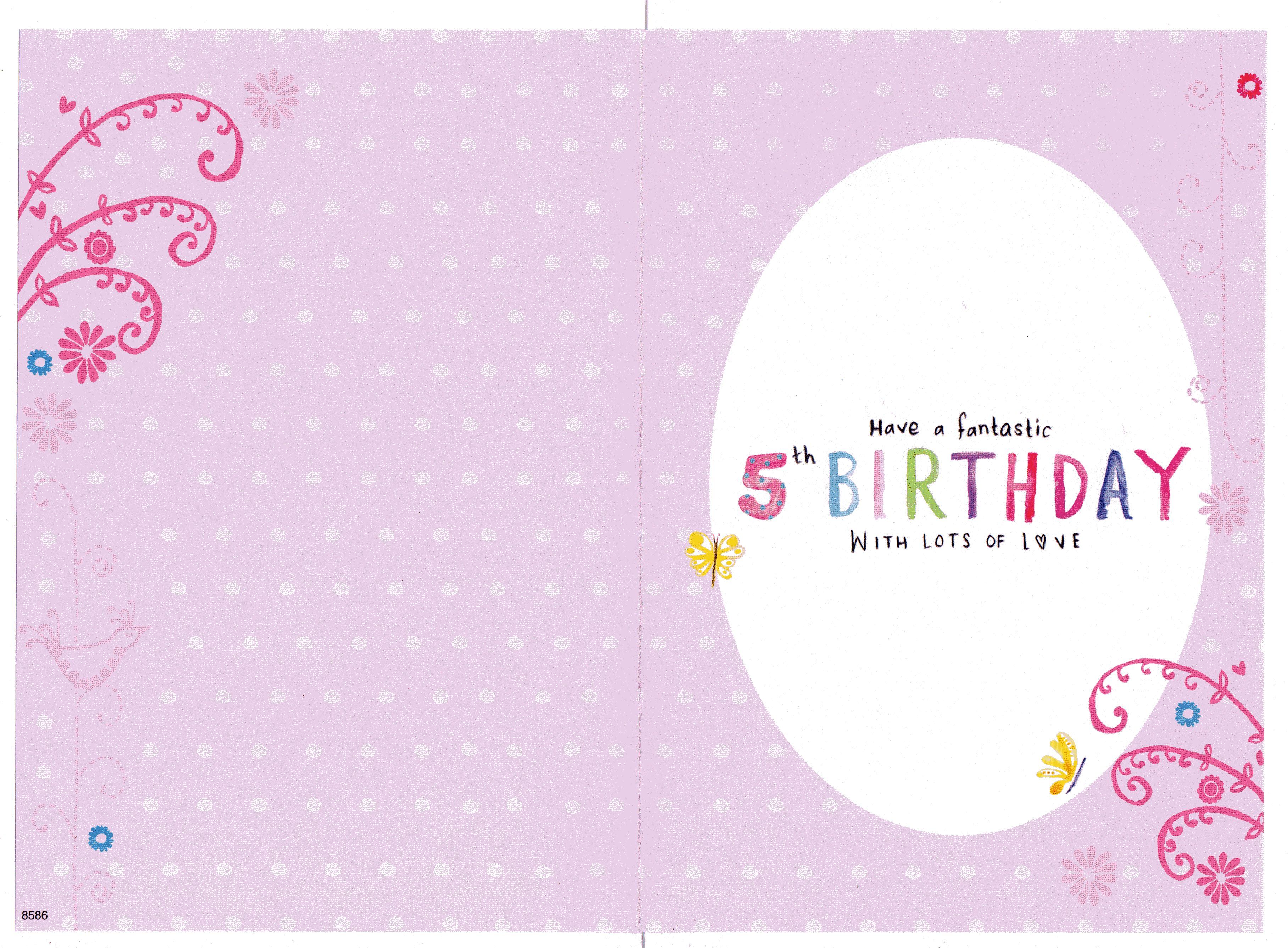Inside reads: Have a fantastic 5th Birthday with lots of Love.