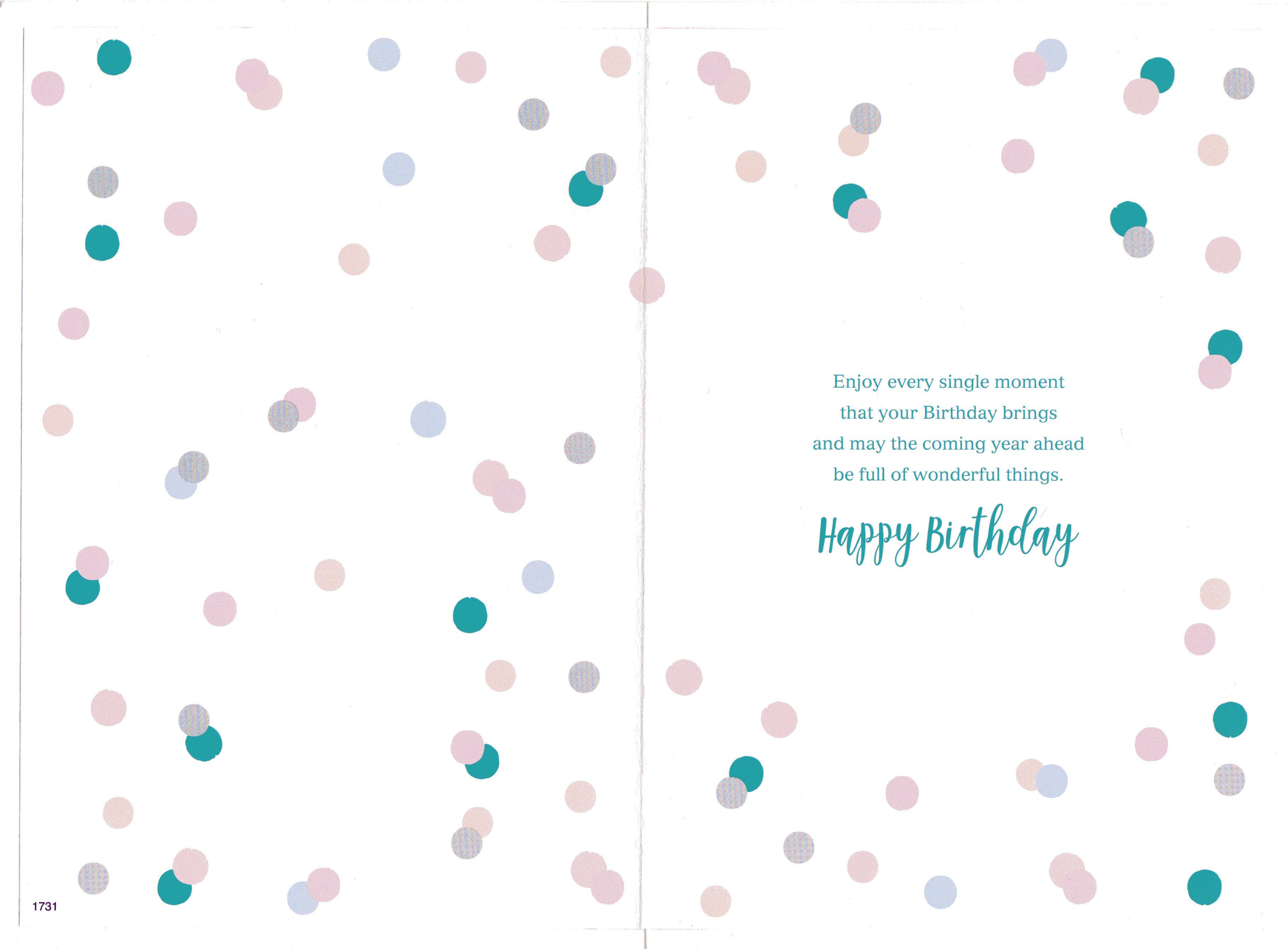 Inside reads: Enjoy every single moment that your Birthday brings and may the coming year ahead be full o wonderful things. Happy Birthday.
