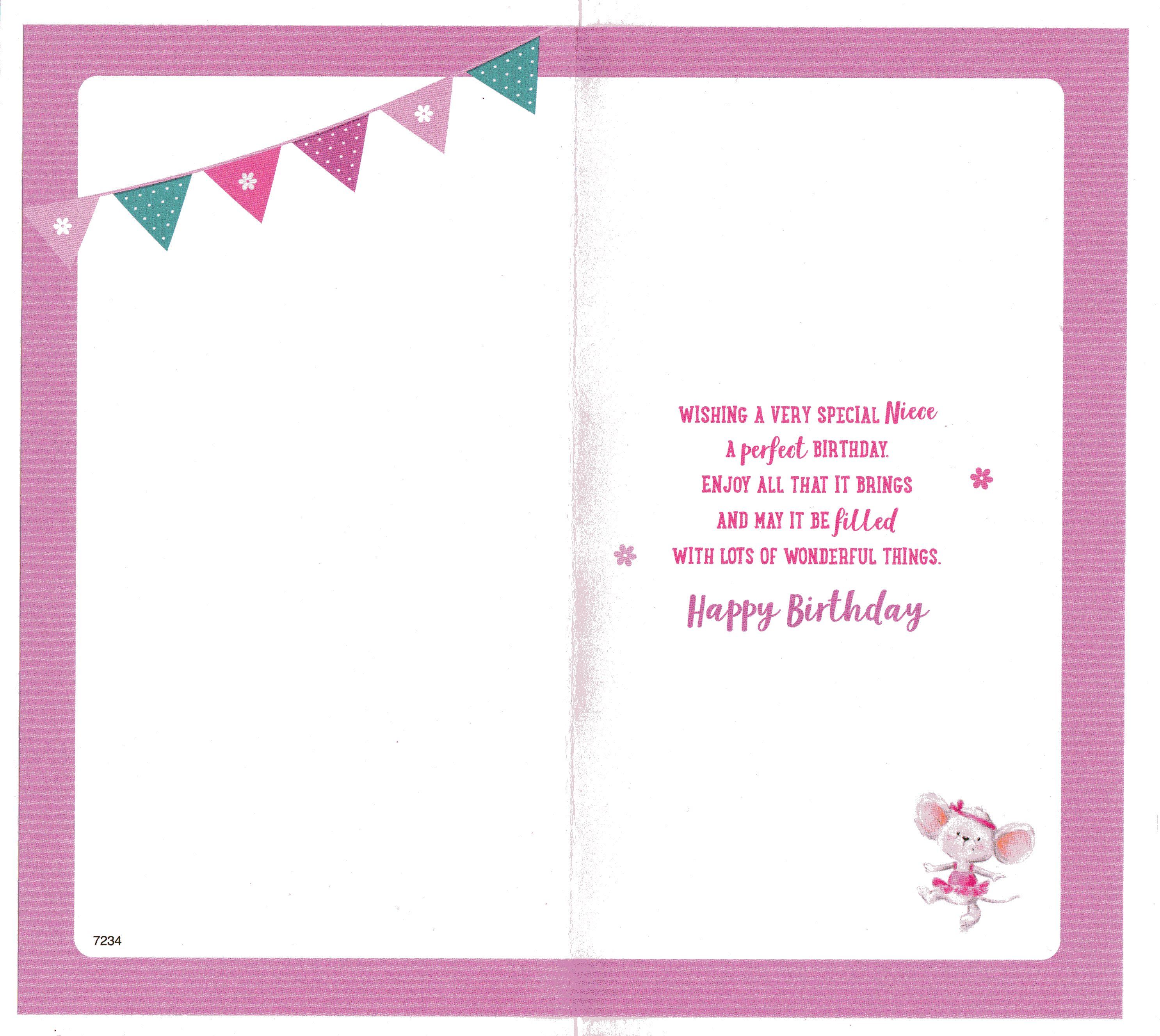 Inside reads: Wishing a very special Niece a perfect Birthday. Enjoy all that it brings and may it be filled with lots of wonderful things. Happy Birthday.