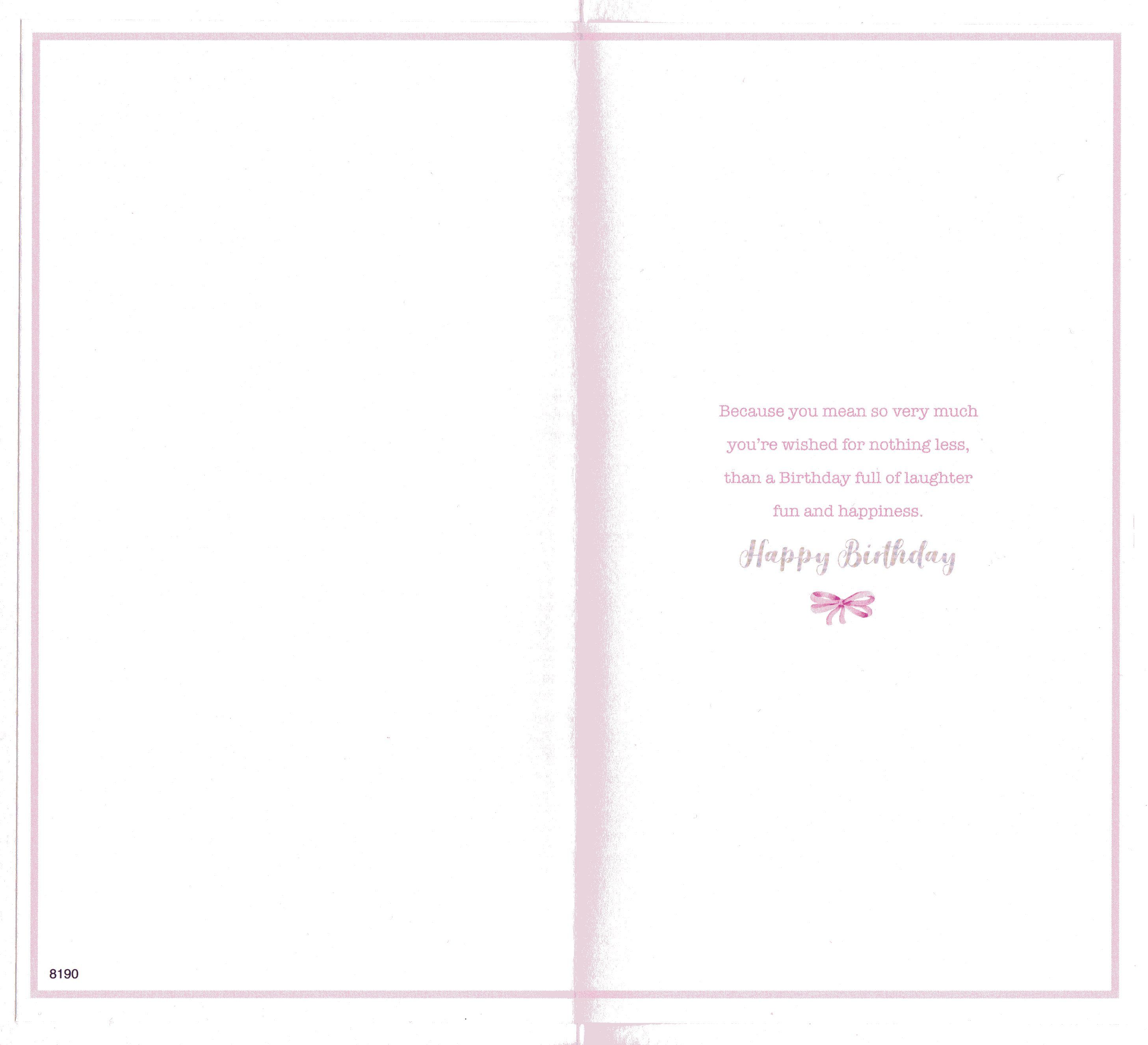 Inside reads: Because you mean so very much you're wished for nothing less, than a Birthday full of laughter fun and happiness. Happy Birthday.