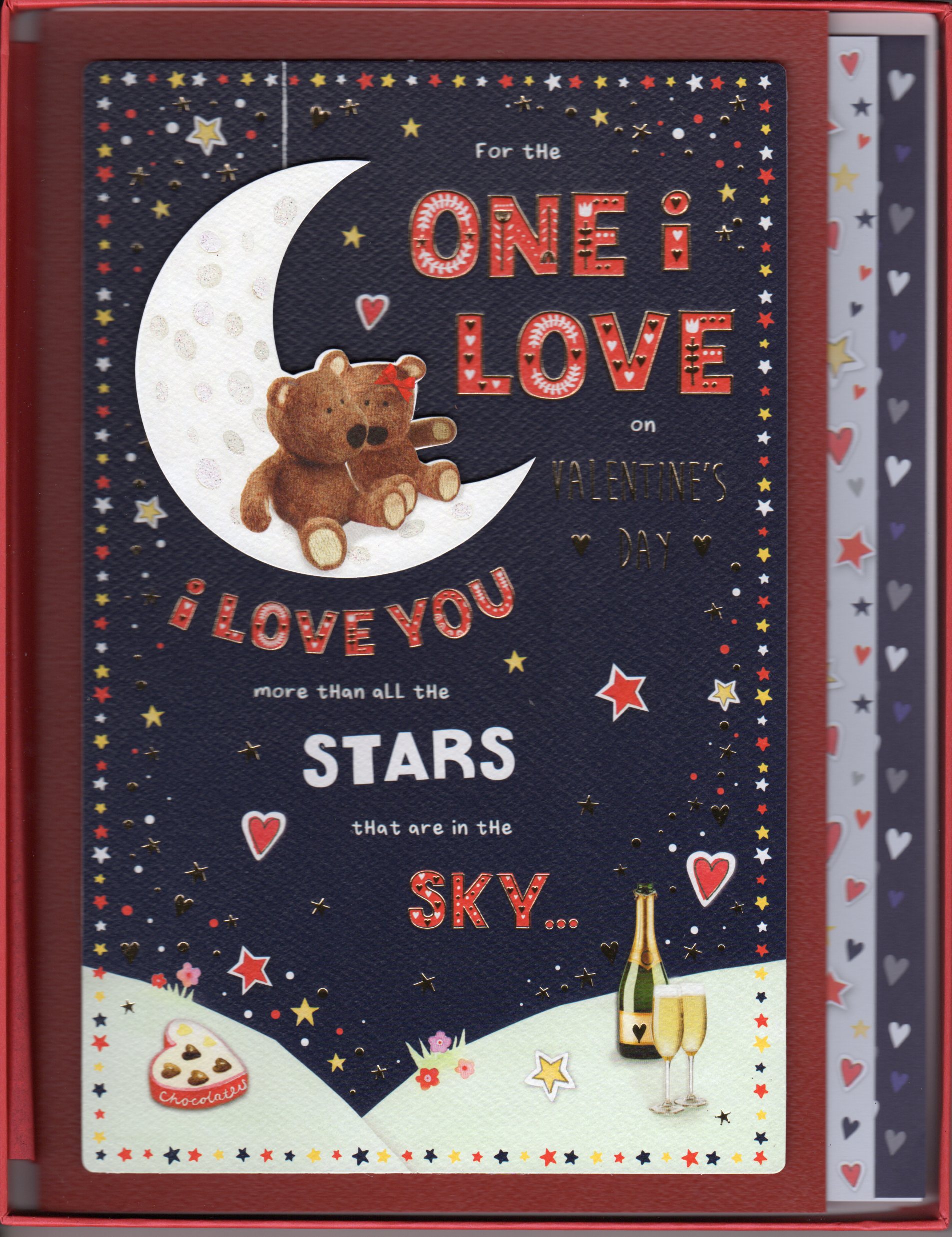 On the front the card reads: For The One I Love On Valentine's Day I Love You more than all the Stars that are in the Sky...