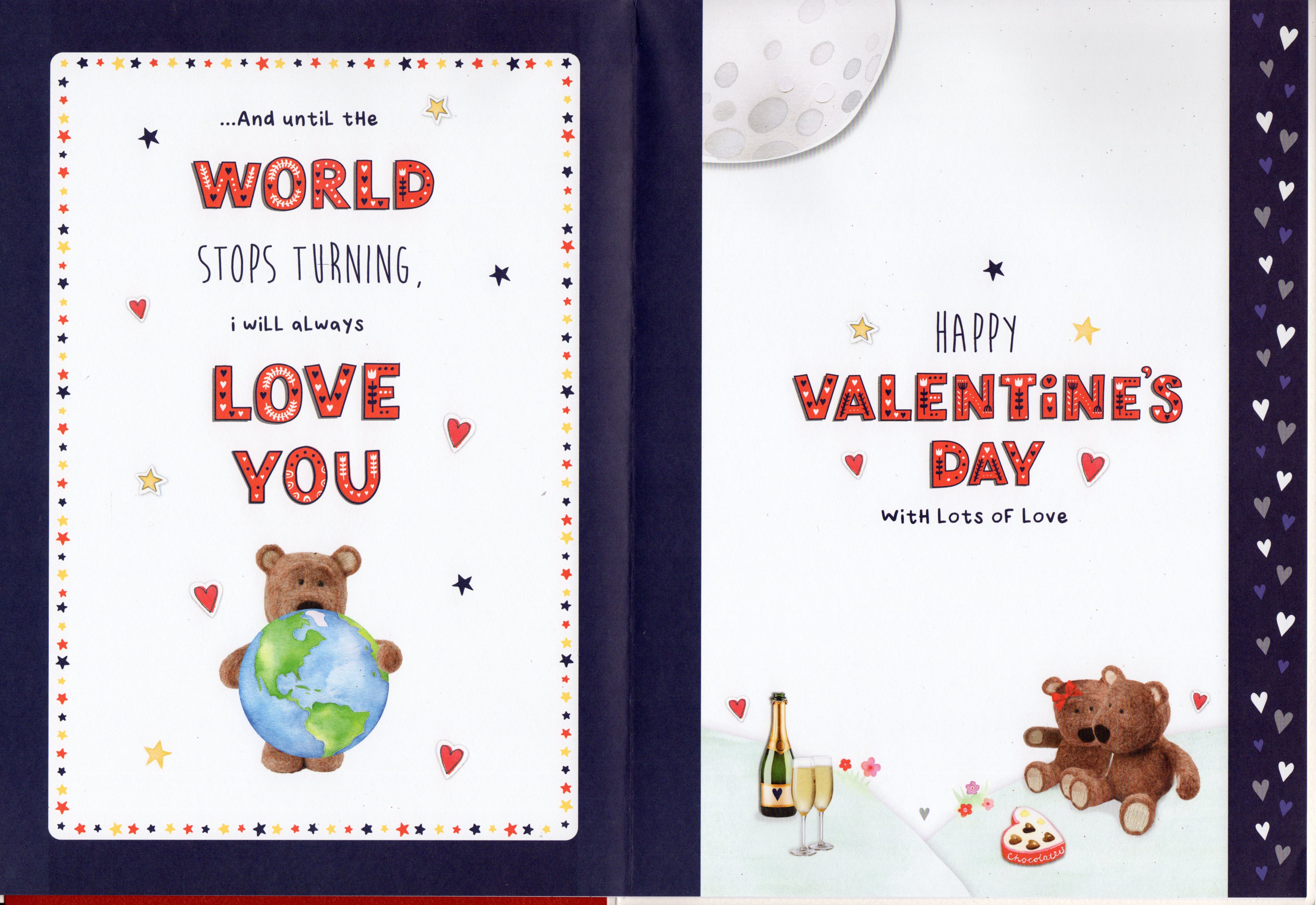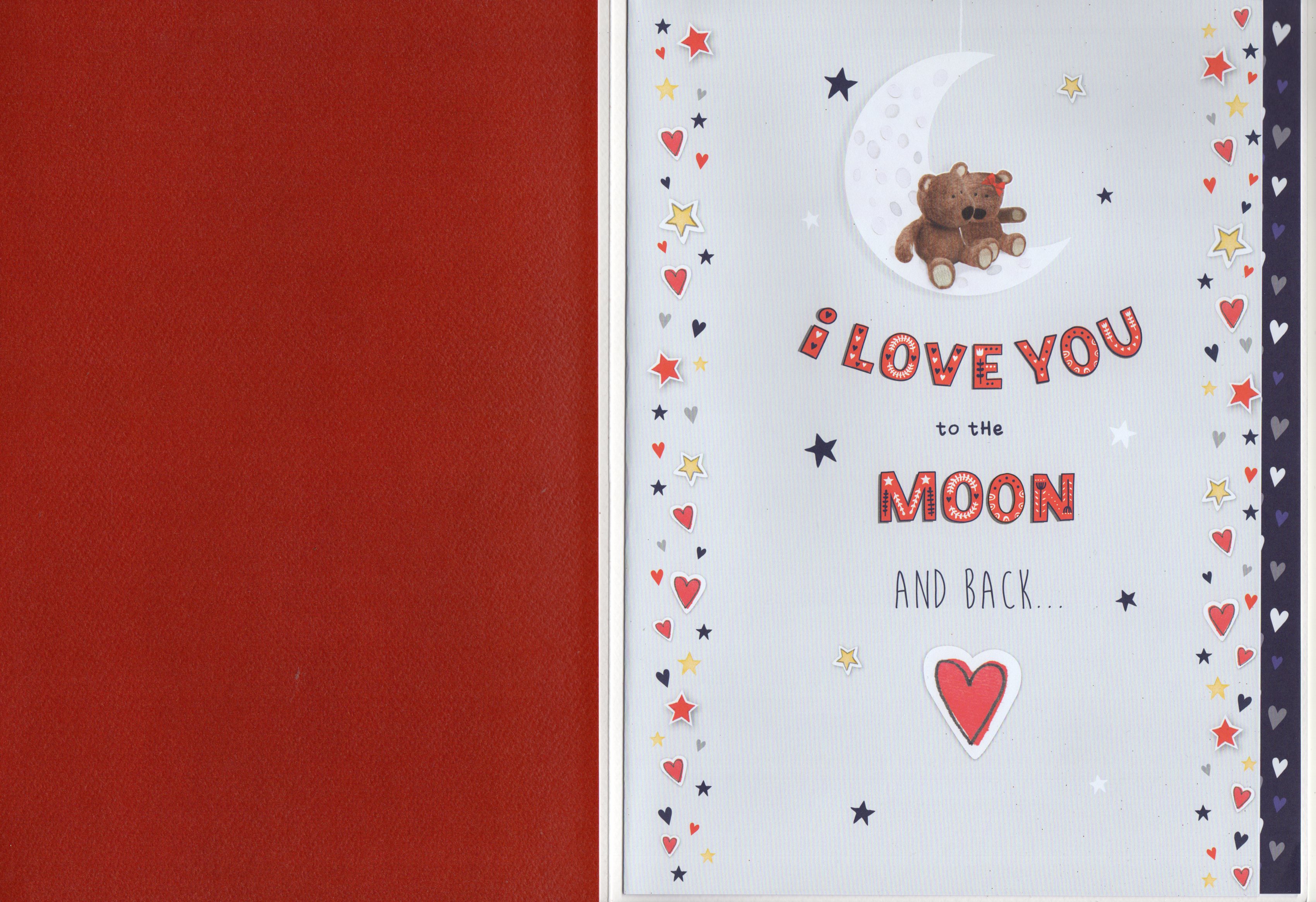Inside reads: page l I Love You to the Moon And Back... page ll ...And until the World stops turning, i will always Love You page lll Happy Valentine's Day with Lots of Love
