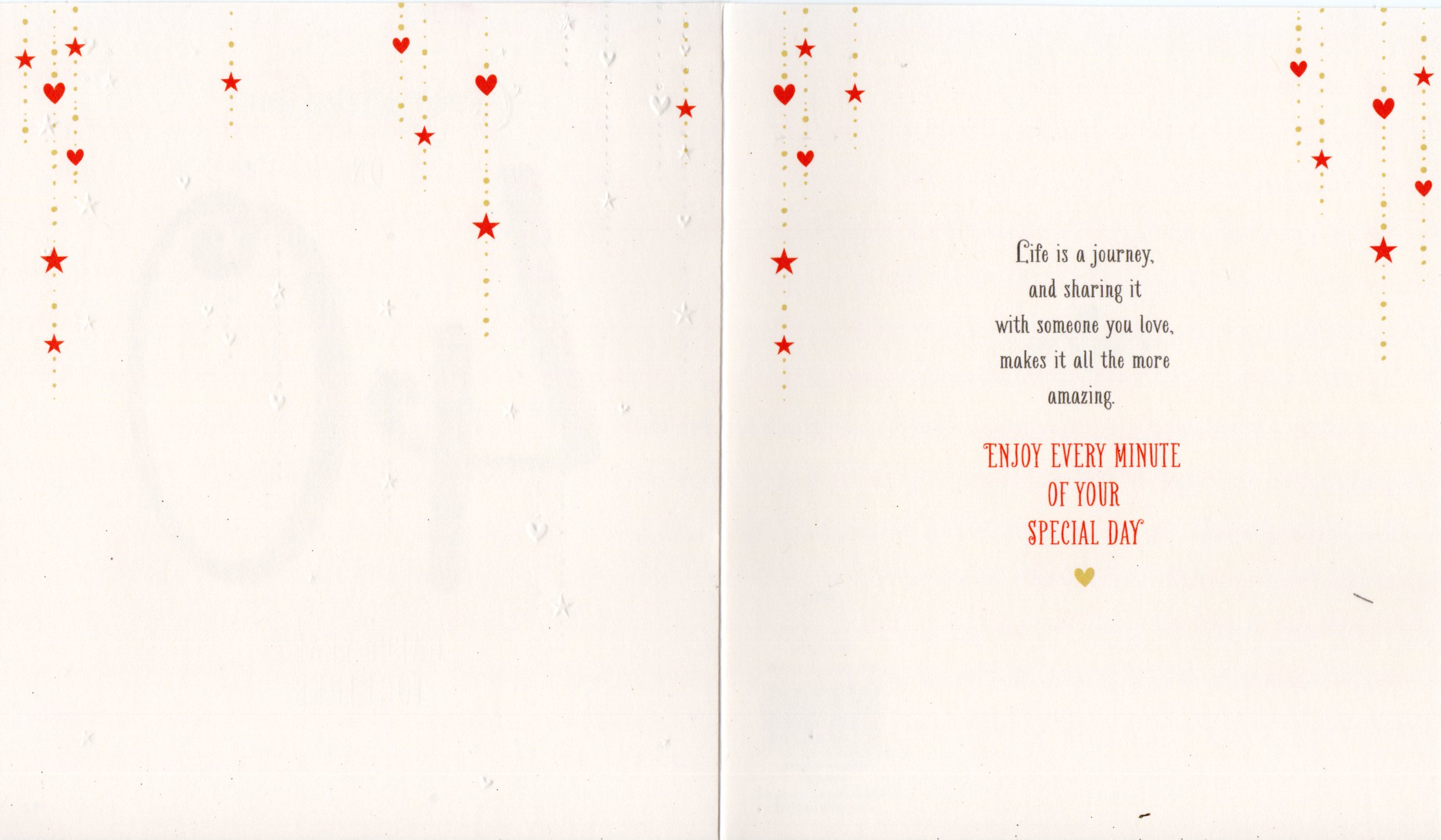 Inside reads: Life is a journey, and sharing it with someone you love, makes it all the more amazing. Enjoy every minute of your special day.