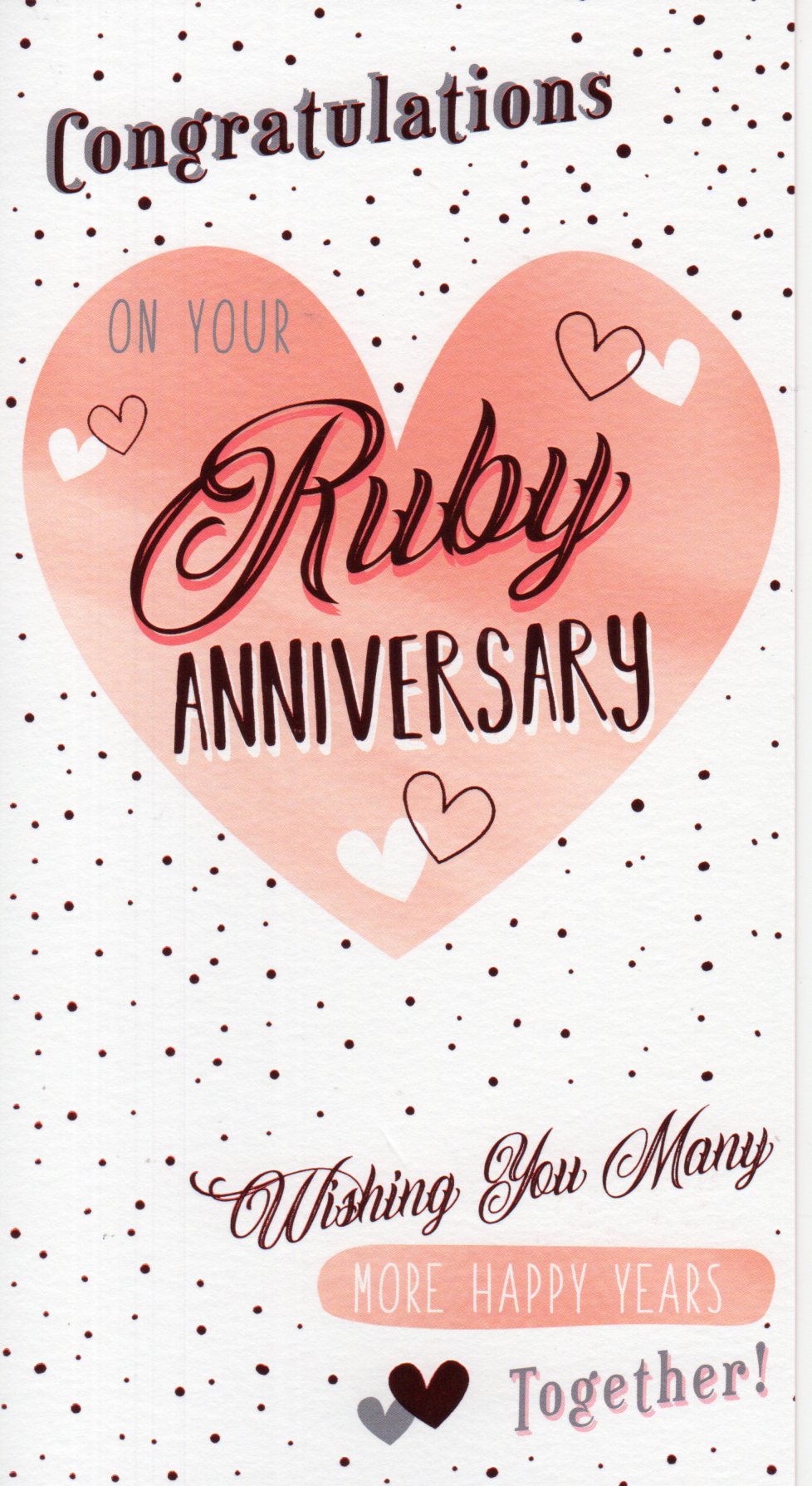 In the front the card reads: Congratulations On Your Ruby Anniversary, Wishing You Many More Happy Years Together!