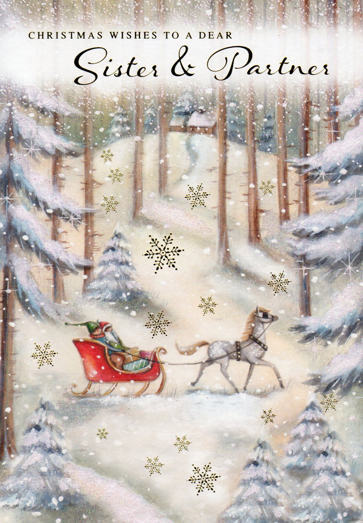 On the front the card reads: Christmas Wishes To A Dear Sister & Partner