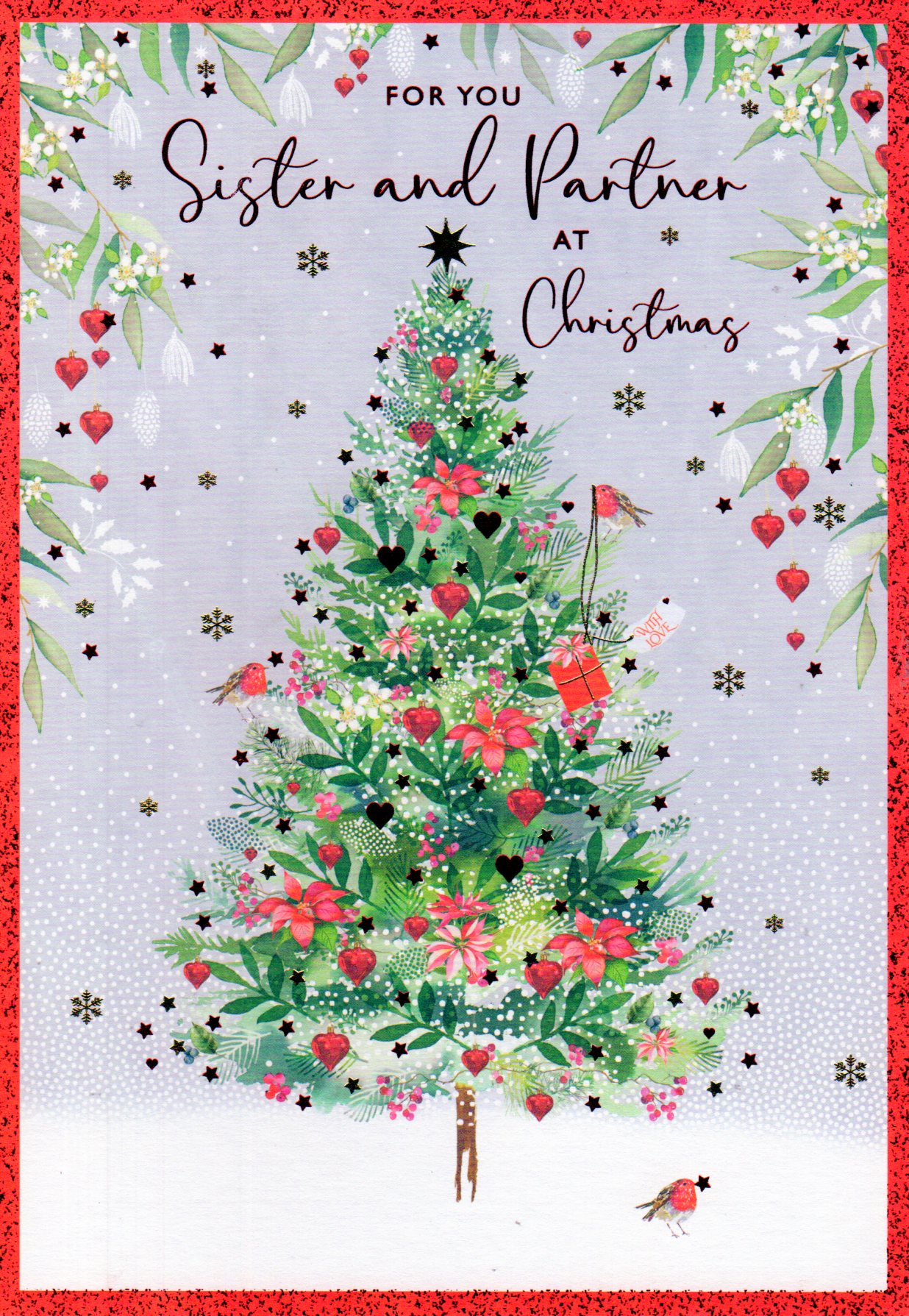 In the front the card reads: For You Sister and Partner At Christmas